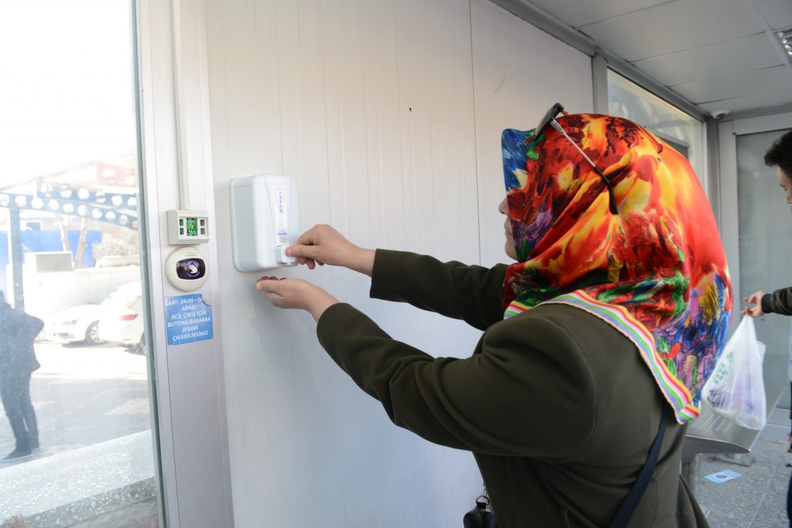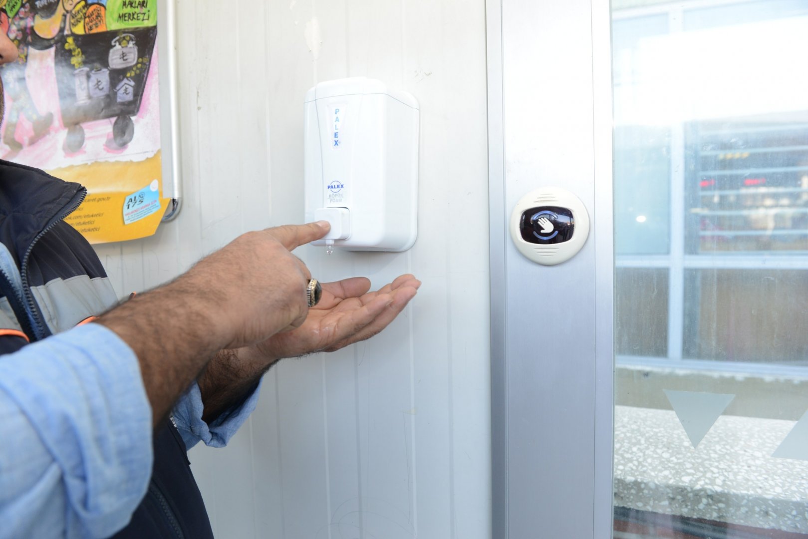 Ayrıca otobüs durakları, Belediye hizmet binası ve belediye binasının her katında personelin ve vatandaşların kullanması amacıyla anti bakteriyel jeller konuldu.