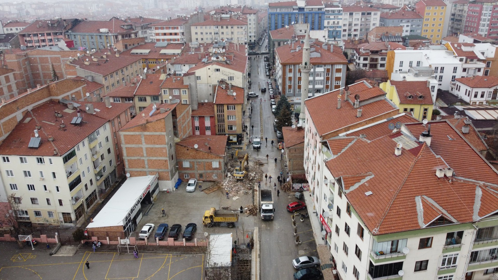 Son olarak da Yeniyol Mahallesi Kulaksız Sokak’ta bulunan betonarme bina, yol genişletme çalışmasına engel olması nedeniyle satın alındı ve yıkımı yapıldı.
