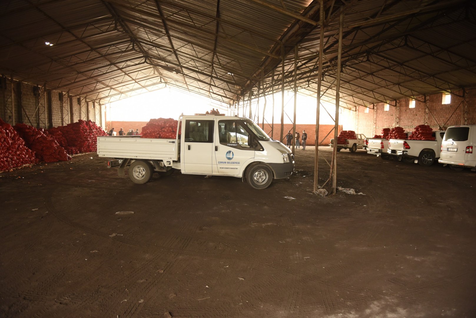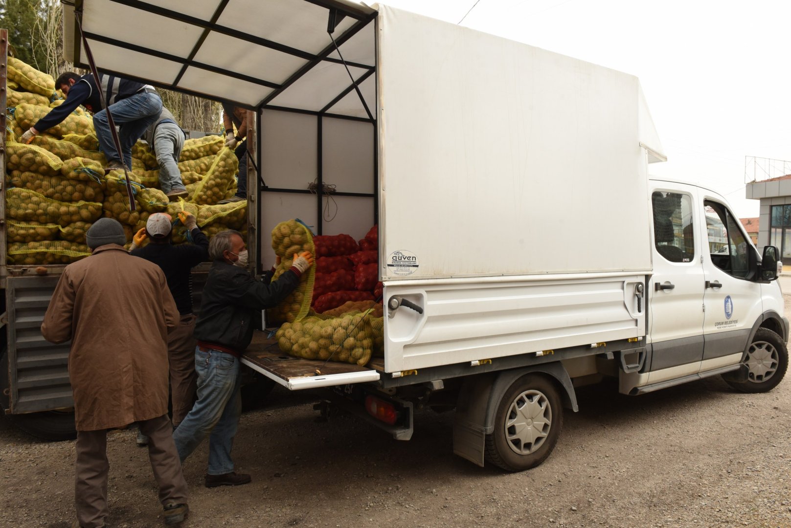Cumhurbaşkanımız Recep Tayyip Erdoğan’ın talimatıyla üreticiye destek olmak, ihtiyaç sahiplerinin ihtiyaçlarını gidermek amacıyla Toprak Mahsulleri Ofisi tarafından alımı yapılan soğan ve patatesler Çorum’da da ihtiyaç sahibi ailelere dağıtılmaya başlandı. Belediyemiz de dağıtıma 5 araç 10 personelle destek veriyor.