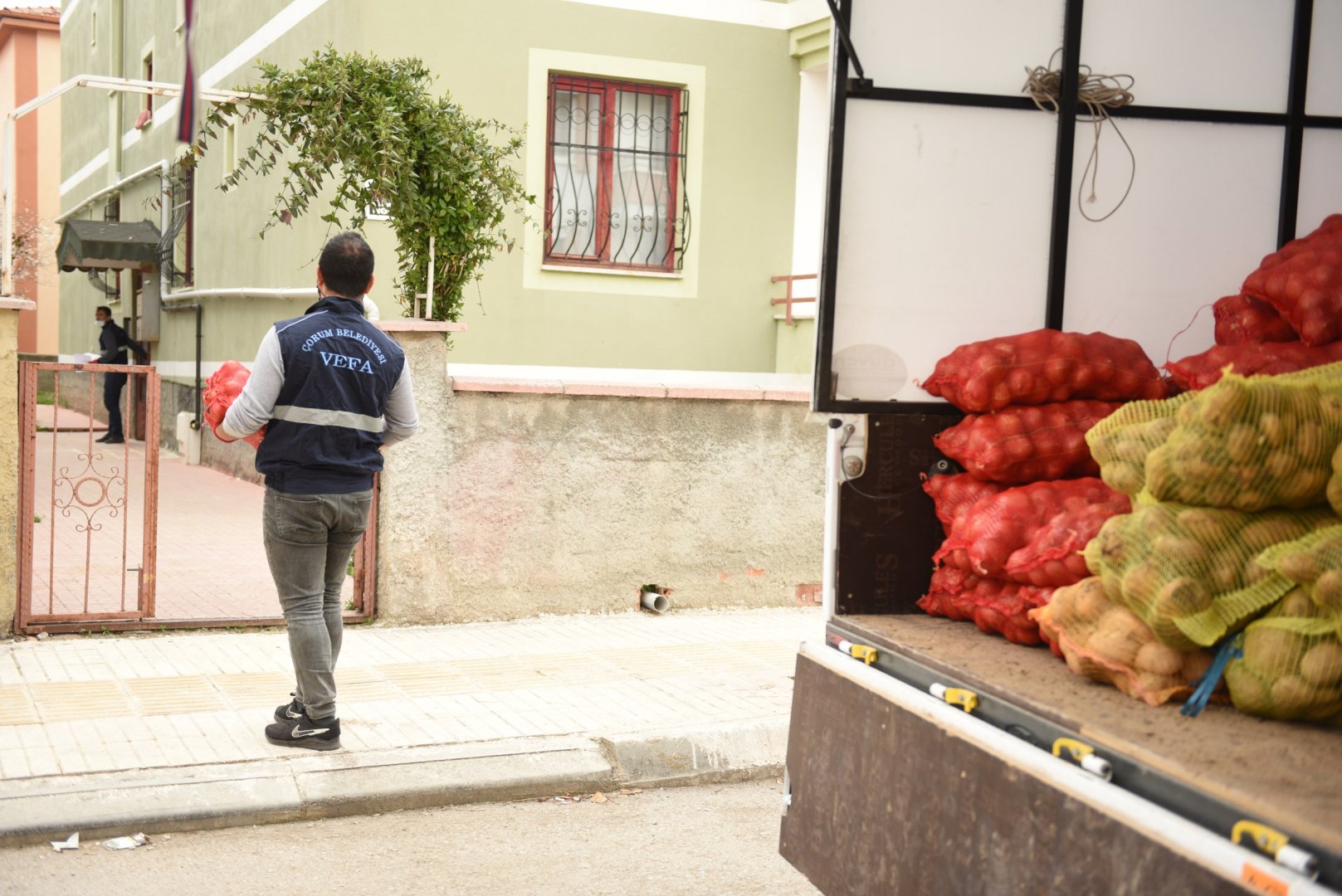 Çorum Belediyesi Vefa Sosyal Destek Grubunun bu işle görevlendirildiğini ifade eden Belediye Başkanımız Dr. Halil İbrahim Aşgın, “Cumhurbaşkanımız Sayın Recep Tayyip Erdoğan’ın kararıyla Toprak Mahsulleri Ofisi tarafından bir yandan üreticinin mahsulünün elinde kalmaması diğer yandan ihtiyaç sahiplerinin bu rahmet ayı içerisinde ihiyaçlarının giderilmesi açısından önemli  bir adım atıldı. Bu hizmetin Çorum ayağında biz de belediye olarak taşın altına elimizi koyalım istedik ve Vefa Sosyal Destek Grubumuzu bu işle görevlendirdik. 5 araç 10 personelimizle patates ve soğanları ihtiyaç sahiplerine ulaştırmak için özveriyle çalışıyoruz.” dedi.