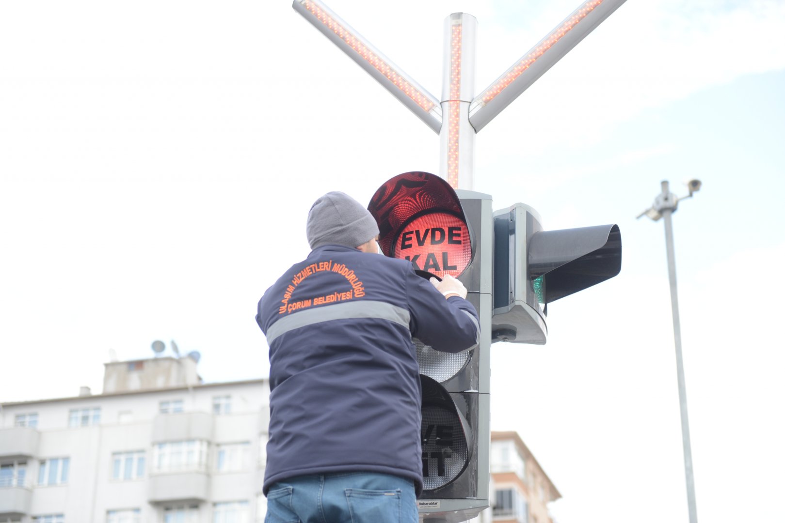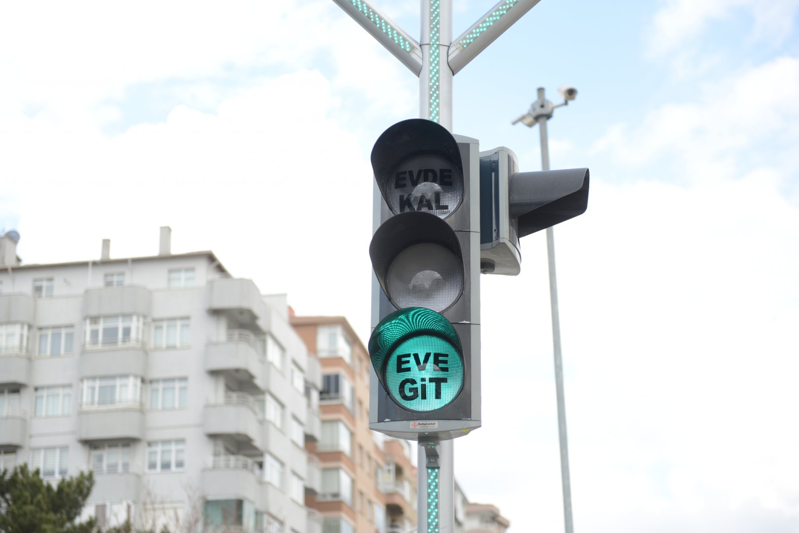 Belediyemiz, koronavirüs tedbirleri ve virüsle mücadele çalışmaları kapsamında sinyalizasyon ışıklarında yeni bir uygulama başlattı. Trafik ışıklarında bekleyen sürücüleri evlerine gitmeye ve evde kalmaya teşvik edici bu uygulama vatandaşlardan tam not aldı.