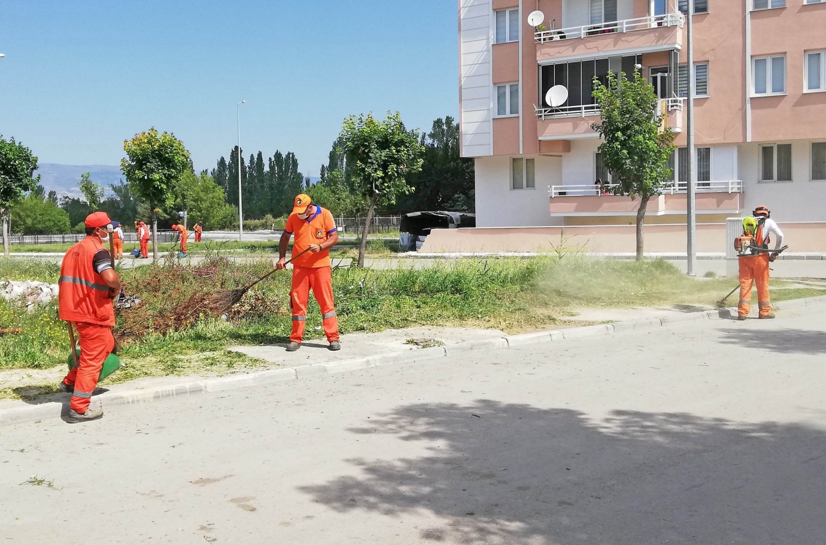Belediyemizin Temizlik İşleri Müdürlüğüne bağlı ekipler il genelinde vatandaşların ağırlıklı kullandıkları alanlar başta olmak üzere yol kenarları ve yaya yollarında biten yabani ot, diken ve çim biçimini 5 tırpancı olmak üzere toplam 22 personelle gerçekleştiriyor.