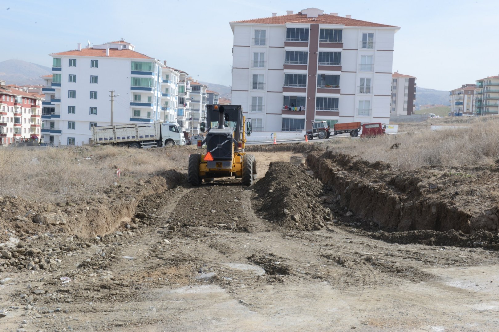 Yeni yol açma, dolgu ve stabilize çalışmalarını aralıksız sürdüren Belediyemiz, Kale Mahallesi Ata 15. Sokak ve Ata 23. Sokak arasında bulunan Ata 19. Sokakta kazı çalışmalarına başladı.
