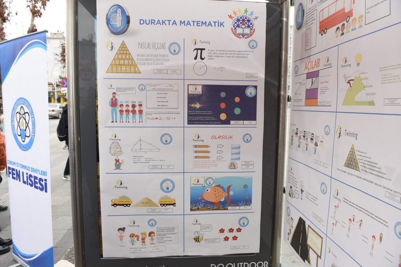 15 Temmuz Şehitleri Fen Lisesi 11-C sınıfı öğrencilerinin lise düzeyinde matematik konularını kendi çizimleriyle afiş tasarımı haline getirdiklerini belirten Tarhan, “Belediye Başkanımız Dr. Halil İbrahim Aşgın, projemize ilk günden itibaren sahip çıktı. Bizlere her türlü imkanı sundu. Belediyemiz tarafından baskıları yapılan bu afişler Çorum’daki otobüs duraklarına asıldı. Bu projeyle birlikte 7’den 70’e hayatımızda matematiğin saklandığı yerleri, eğlenceli çizimlerle yeniden keşfetmemizi, matematiği artık severek, isteyerek öğrenmeyi hedefledik. Bunun için duraklara hazırladığımız afişleri asarak herkesin matematik algısını değiştirerek matematiği kitap, okul, öğrenci ve öğretmen dörtgeninden çıkarıp günlük yaşamın bir parçası haline getirmek istedik.” diye konuştu.