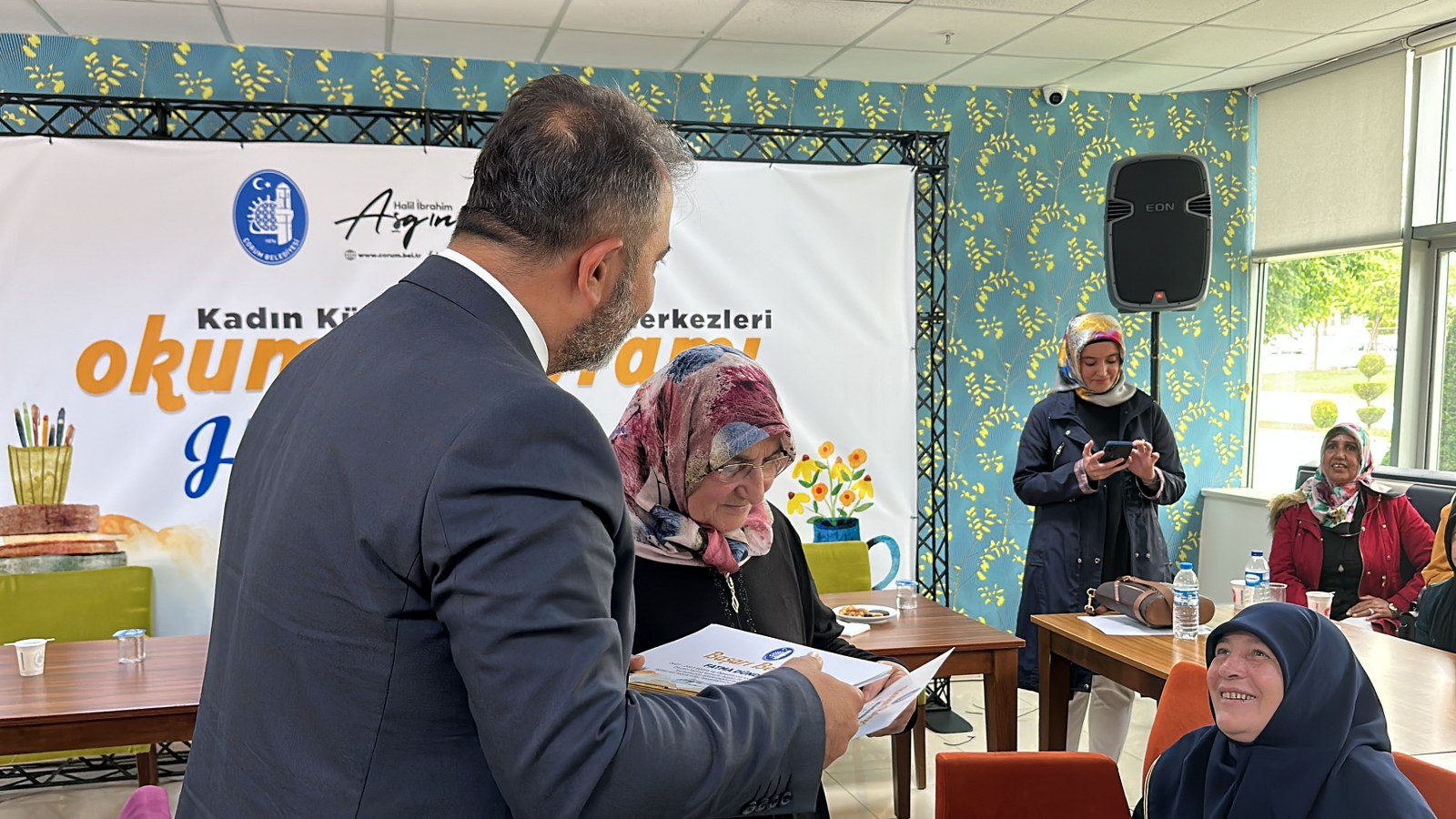 Çorum Belediyesi’nin kadınlar için açtığı okuma yazma kursu sona erdi. Kursu başarıyla tamamlayan kadınlar için okuma bayramı etkinliği gerçekleştirildi.