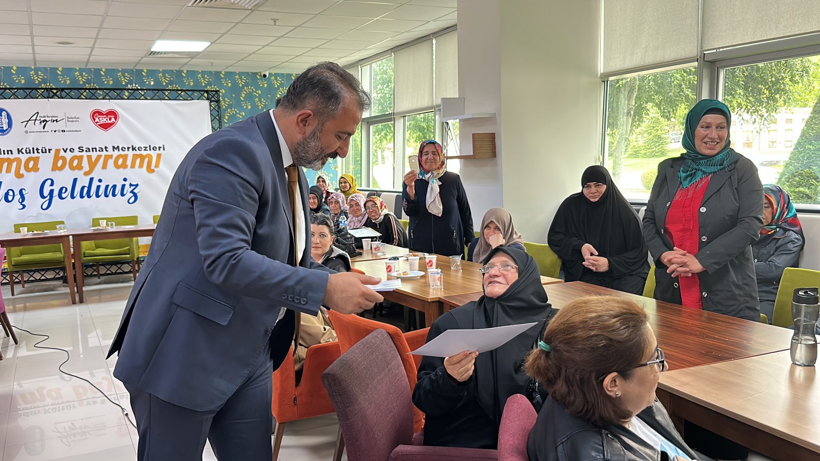 Program sonunda kursiyerlere başarı belgeleri verildi. Etkinlikte ayrıca Kadın Kültür ve Sanat Merkezi’nde müzik eğitimi alan kursiyerler, bağlama eşliğinde türküler seslendirdi.