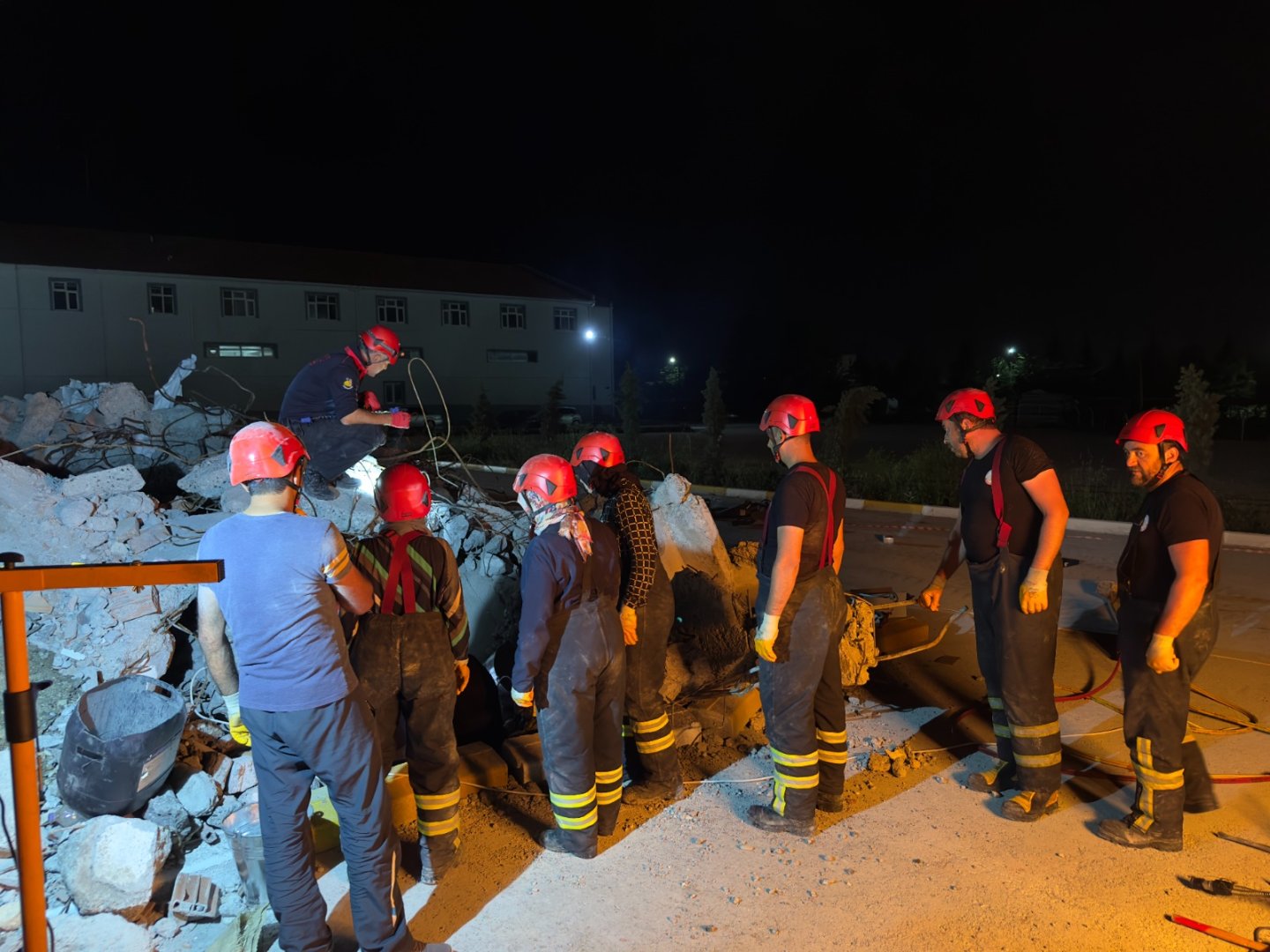 Çorum Belediyesi tarafından olası doğal afetlerde görev yapmak üzere oluşturulan arama kurtarma ekibi eğitimlerini sürdürüyor. Gönüllü personel içerisinden oluşturulan ilk grup ise eğitimlerini tamamladı. Eğitimin son gününde, gece saatlerinde göçen bir binanın altından arama ve kurtarma çalışmaları gerçekleştirildi. Artama kurtarma ekibinin zamana karşı yarışı gerçek görüntüleri aratmadı.
