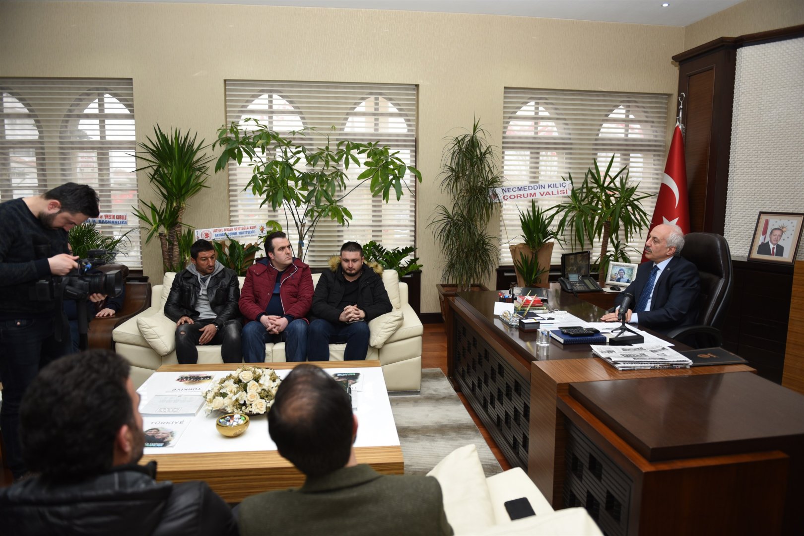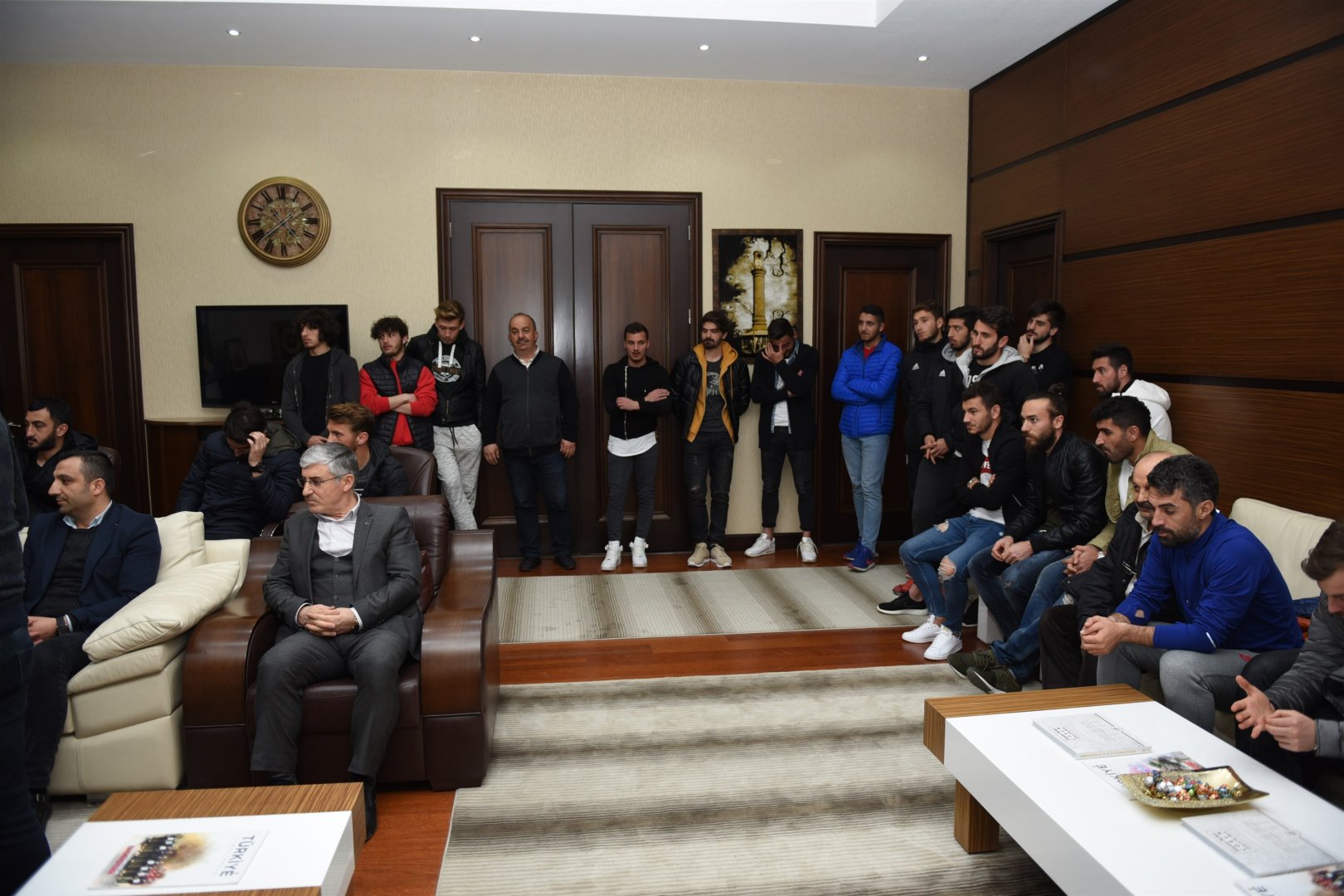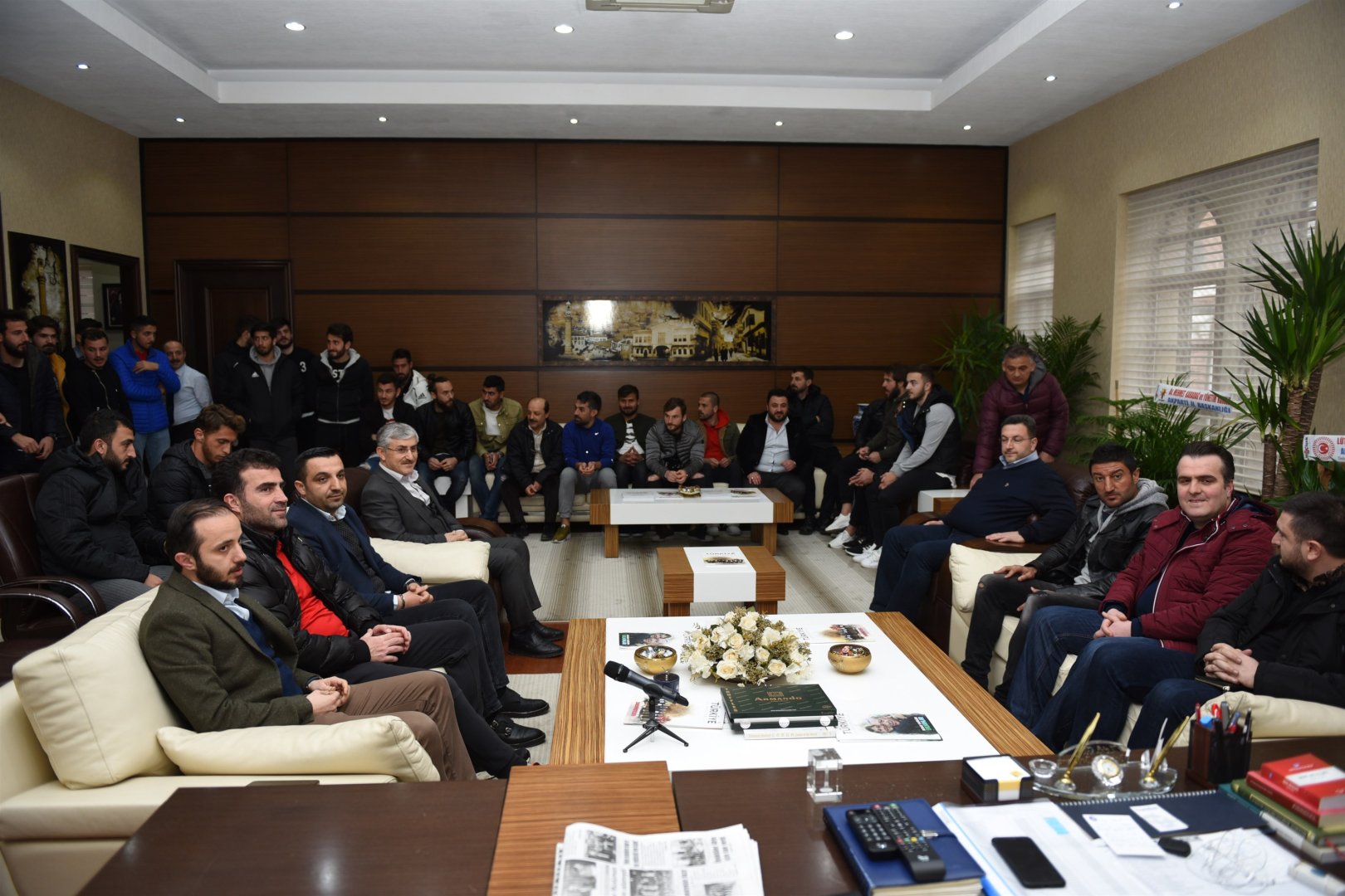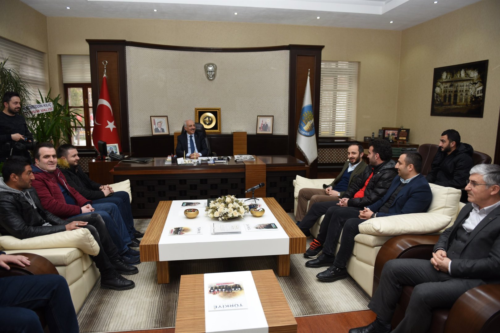 Çorum Belediyespor yönetimi, teknik heyet ve futbolcular ile birlikte Belediye Başkanı Zeki Gül’e hayırlı olsun ziyaretinde bulundu.