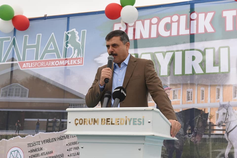 80 dönümlük devasa alan üzerine inşa edilen Binicilik Tesisi’nde 3 bin 150 metrekare kapalı manej alanı, binicilik eğitim alanı, 4 bin 600 metrekare açık manej alanı, 1650 metrekare Ahır, 21 metrekarelik 25 adet box, veteriner hekim odaları, otlaklar, seyis odaları, karantina odası, depo, samanlık, at yıkama odaları, teknik donatılar, cafe, mescit, çok amaçlı salon, teras ve ofisle Çorum halkına hizmet verecek. Açılışta bir konuşma yapan Belediye Başkanımız Dr. Halil İbrahim Aşgın, atların tarihte Türkler için önemine değinerek “İlk kez atlar M.Ö 4000’li yıllarda bizim ecdadımız tarafından evcilleştirilmiştir. Ertuğrul’u, Osman Gazi’yi, Yavuz Sultan Selim’i, Kanuni Sultan Süleyman’ı ve Fatih Sultan Mehmet’i atsız düşünemeyiz. Bizim medeniyetimiz bugünlere gelmişse atlara borçluyuz. Atlar diğer hayvanları gibi sıradan hayvan değildir.” dedi Binicilik Tesisi’ni önemsediklerini belirten Aşgın, tesisin hem spor, hem eğlence hem de sağlık merkezi olacağını söyledi.