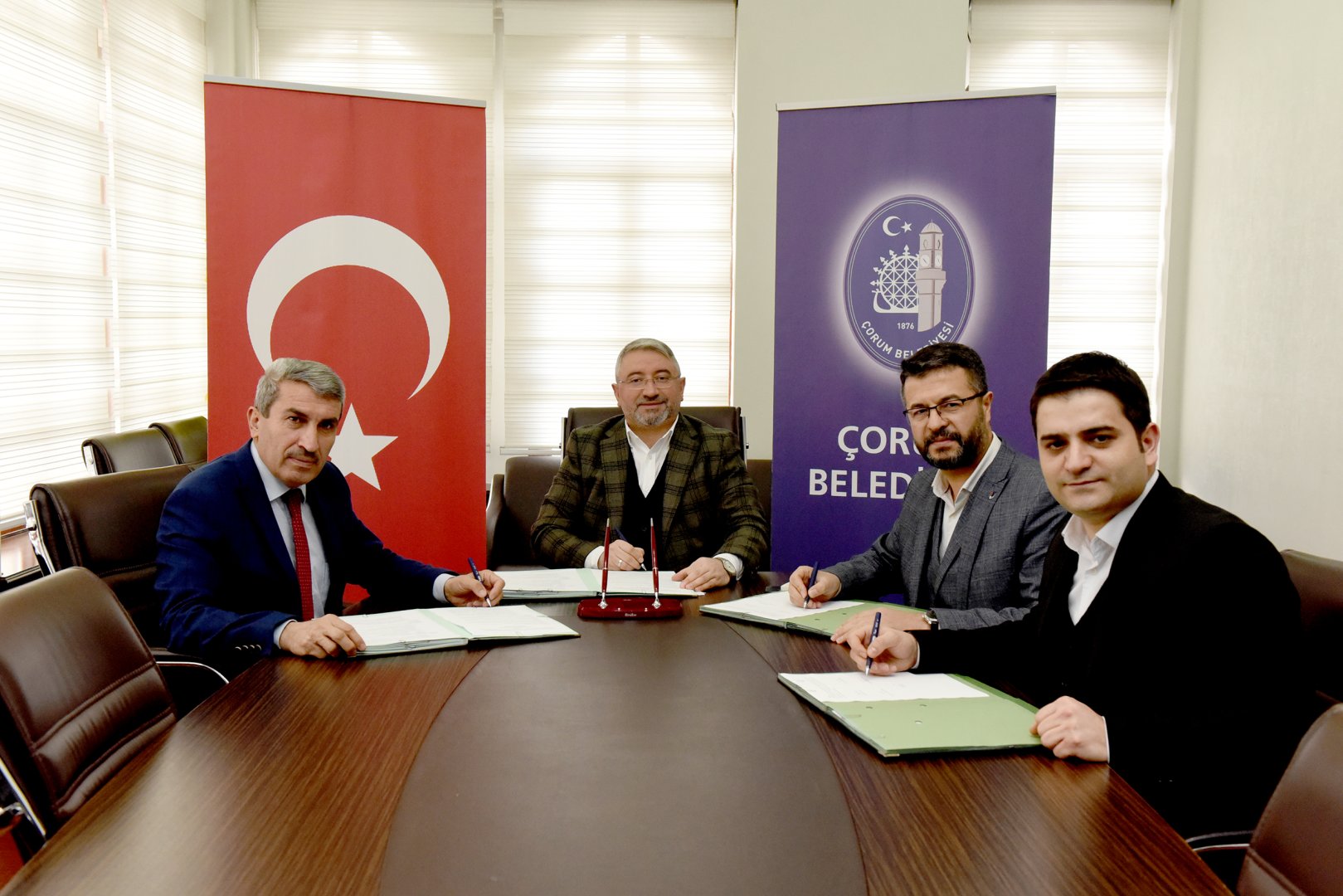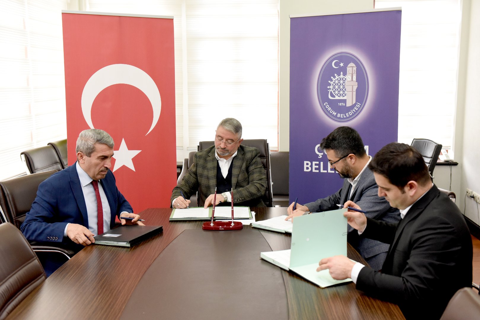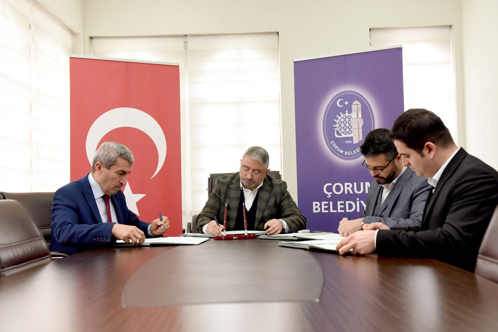 Belediyemizin Toplantı Salonunda yapılan imza törenine Belediye Başkanımız Dr. Halil İbrahim Aşgın ile birlikte İl Milli Eğitim Müdürü Yakup Sarı, Eğitim Bir Sen Çorum Şube Başkanı Tekin Çınar ve Genç Memur Sen İl Başkanı Fatih Okumuş katıldı.