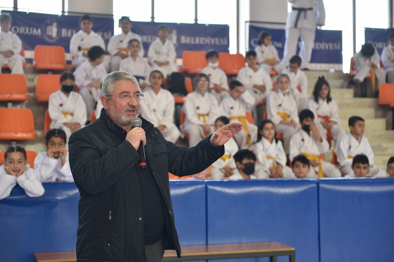 Belediye Başkanımız Dr. Halil İbrahim Aşgın törende yaptığı konuşmada Türk Bayrağını olimpiyatlarda dalgalandıracak sporcuların yetişmesi için spora yönelik her türlü desteği verdiklerini belirterek “Bu konuda biz ve velileriniz her türlü fedakârlığa hazırız” dedi. Başkan Aşgın, “Ben bugün kuşak atlayan bütün yavrularımızı tebrik ediyorum. Hem eğitim alanlarında hem spor yaşantılarında gençlerimize üstün başarılar diliyorum. Haftasonu yavrularını yalnız bırakmayarak sınavlarına gelen velilerimize de teşekkür ediyorum. Yeni kuşaklarınız hayırlı uğurlu olsun” diye konuştu.