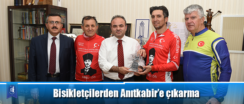 Geçtiğimiz Mart ayında Çanakkale Zaferi’nin yıldönümü nedeni ile Samsun’dan Çanakkale’ye pedal çeviren bisikletçiler bu sefer de 10 Kasım nedeni ile Samsun’dan Anıtkabir’e yola çıktı. Samsun’dan yola çıkan Ekolojik Yaşam Bisiklet Derneği üyeleri Belediye Başkan Yardımcısı Turhan Candan’ı makamında ziyaret etti. Samsun’dan devraldıkları Türk Bayrağı’nı Anıtkabir’e götürmek üzere Samsun’dan yola çıkan Emekli Astsubay Ayhan Basmacı, emekli polis memuru Selim Daban ve Osman Özdemir’den oluşan ekip Belediye Başkanı Turhan Candan’a kendilerine verdikleri destekten dolayı teşekkür ederek plaket verdiler.