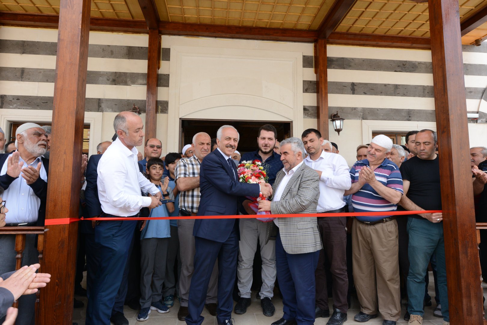 Açılış kurdelesini Müftü Ahmet Akın ve Mahalle Muhtarı Abdulkadir Erdoğan’la birlikte kesen Belediye Başkanı Gül’e çiçek takdim edildi.