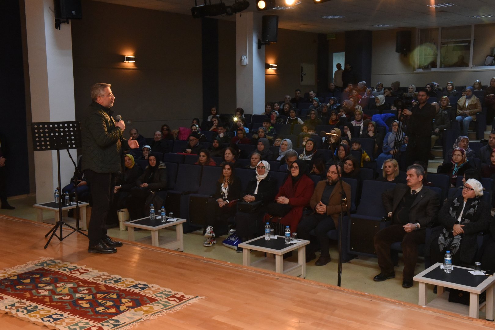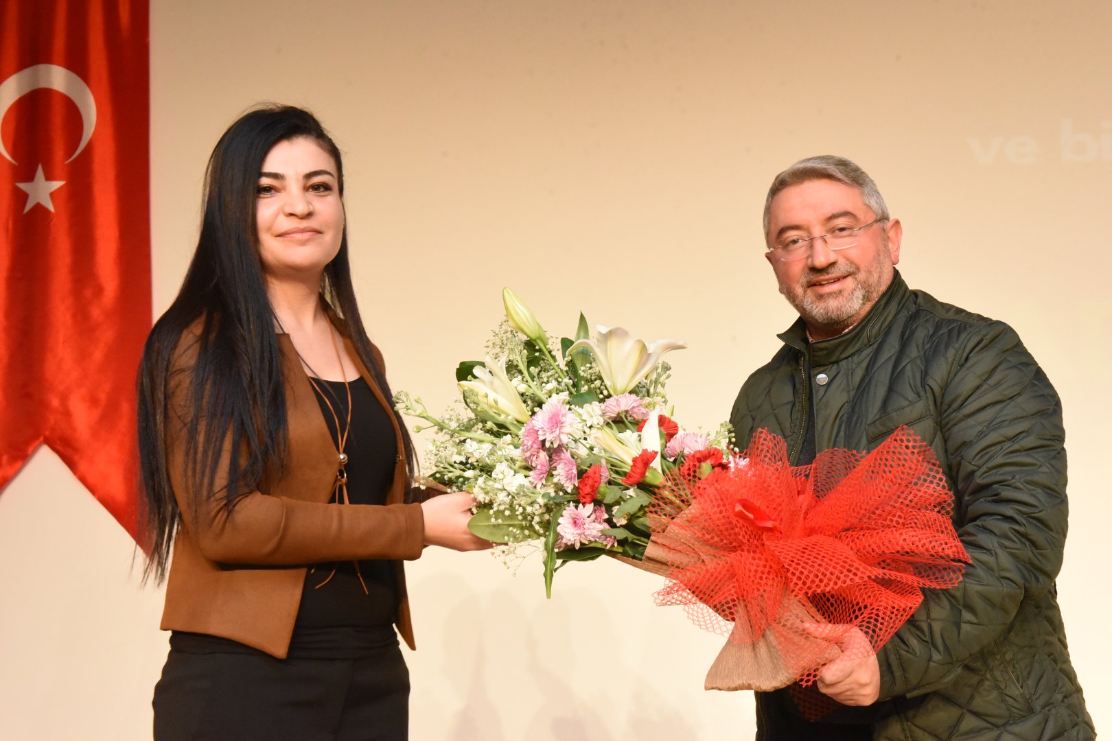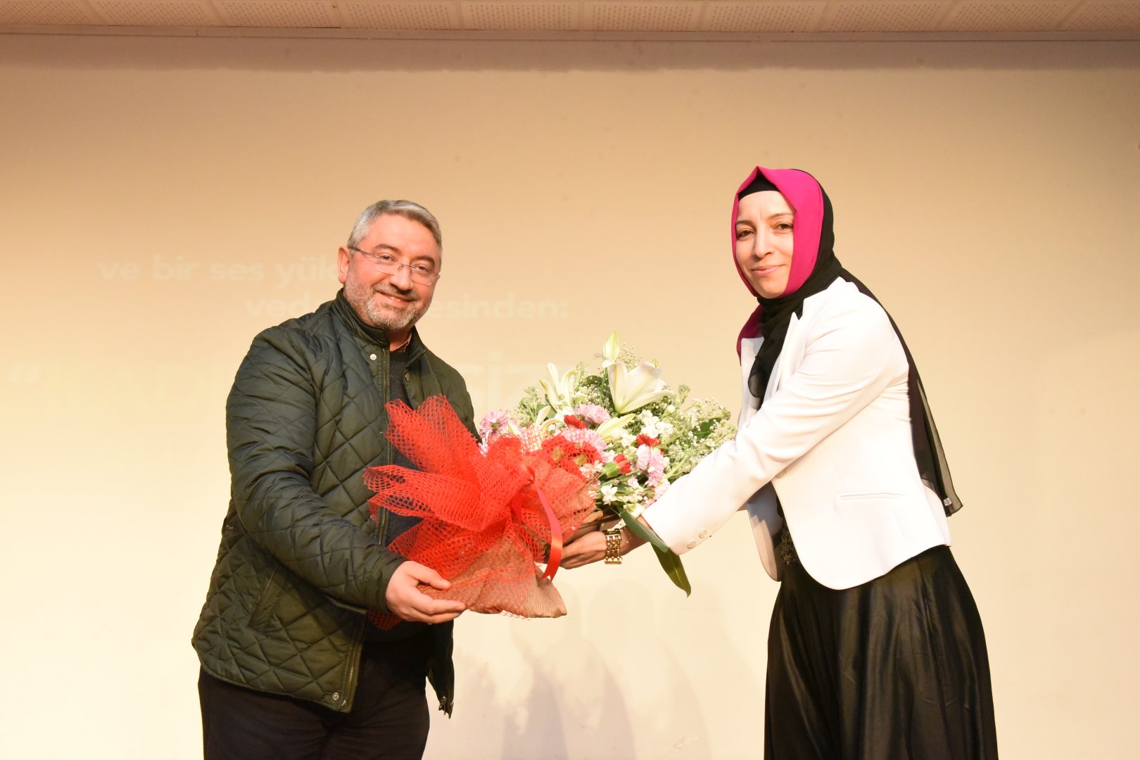 Buhara Kültür Merkezi Konferans Salonu’nda düzenlenen Belediye Başkanımız Dr. Halil İbrahim Aşgın, Belediye Meclis Üyemiz Kenan Özüyağlı, Tesisler Müdürümüz Mahmut Yabacıoğlu, kursiyerler ve kursiyerlerin aileleri de izledi. Skeçler, şarkılar ve şiirlerin yer aldığı programda konuşma yapan Başkan Aşgın kadınların Türk toplumunda özel bir yere sahip olduğunu belirterek; “5 aralık 1934 tarihine kadar medeni diye tabir edilen bir çok ülkede kadına seçme ve seçilme hakkı verilmemişken Türkiye Cumhuriyeti bu hakkı kadınlarımıza vermiştir. Türk Milleti asırlardır adaleti temsil etmişse, yeryüzüne barışı, sevgiyi, kardeşliği yaymışsa bunu kadınıyla erkeğiyle başarmıştır. Tarihte Nene Hatunlar, Şerife Bacılar vardır. Modern Türk kadını çok büyük haklara sahip ama bizim tarihi geçmişimizde de kadınlar haklara sahipti. Bizim tarihi geçmişimizde Hatun vardı Hakan vardı bunlar eşit haklara sahipti. Kadın hakları yeni bir şey değil eski Türklerden bugüne gelen bir anlayış bir gelenek. İslam cenneti annelerin ayağı altına vermekle kadına tarihi boyunca en üst değeri verdi. Peygamber Efendimizin Veda Hutbesi’nde son sözlerinden bir tanesi “Kadınlar Allah’ın sizlere emanetidir. Kadınlara sahip çıkın” diyor. Daha müreffeh, çağdaş, gelişmiş, bilimde, sanatta, kültürde, fende, ahlakta, medeniyette daha güzel günleri inşallah elele gönül gönüle vererek, ülkemizi daha aydınlık günlere taşıyacağımızı düşünüyor ve umuyorum. Kadın Kültür Merkezlerimiz en az her yıl 10 bin hanımefendiye hizmet veriyor. Şuanda 6 Kadın Kültür Merkezimiz var 2 tane de daha açacağız. Bu şehrin kadınları her zaman en güzeline en iyi hizmete layıktır” ifadelerine yer verdi.