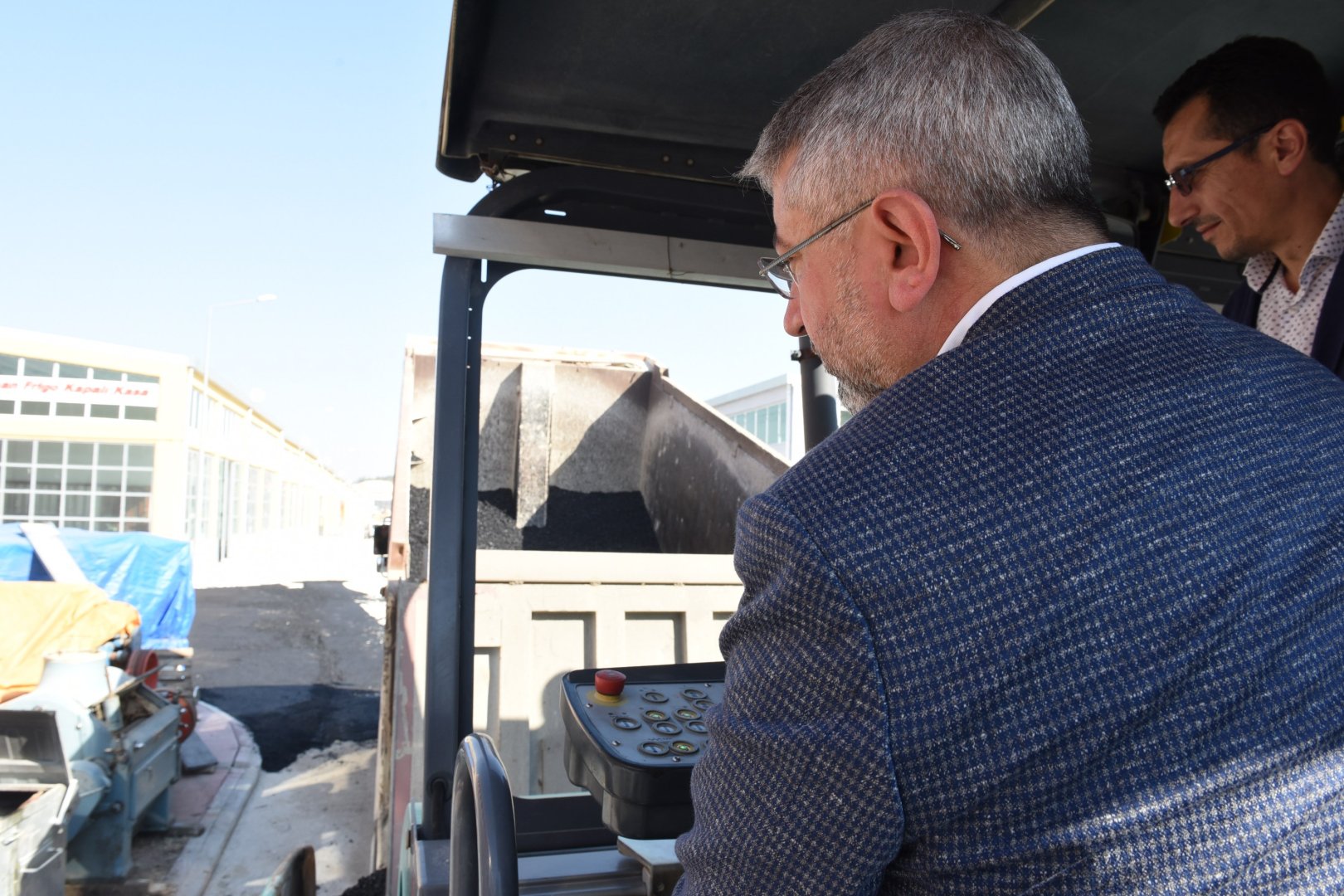 Yıllardır yolu yapılamayan bu dükkanların önünü bugün asfaltlıyoruz, inşallah tamamını yapıp bitireceğiz. Kışlanın arkasına yol yapıyoruz. Tamamı bittiği zaman 35 metre olacak olan yolun 14 metrelik kısmını asfaltlıyoruz ve kullanıma açacağız. Bu yol aynı zamanda esnafımıza ulaşımı kolaylaştıracak.