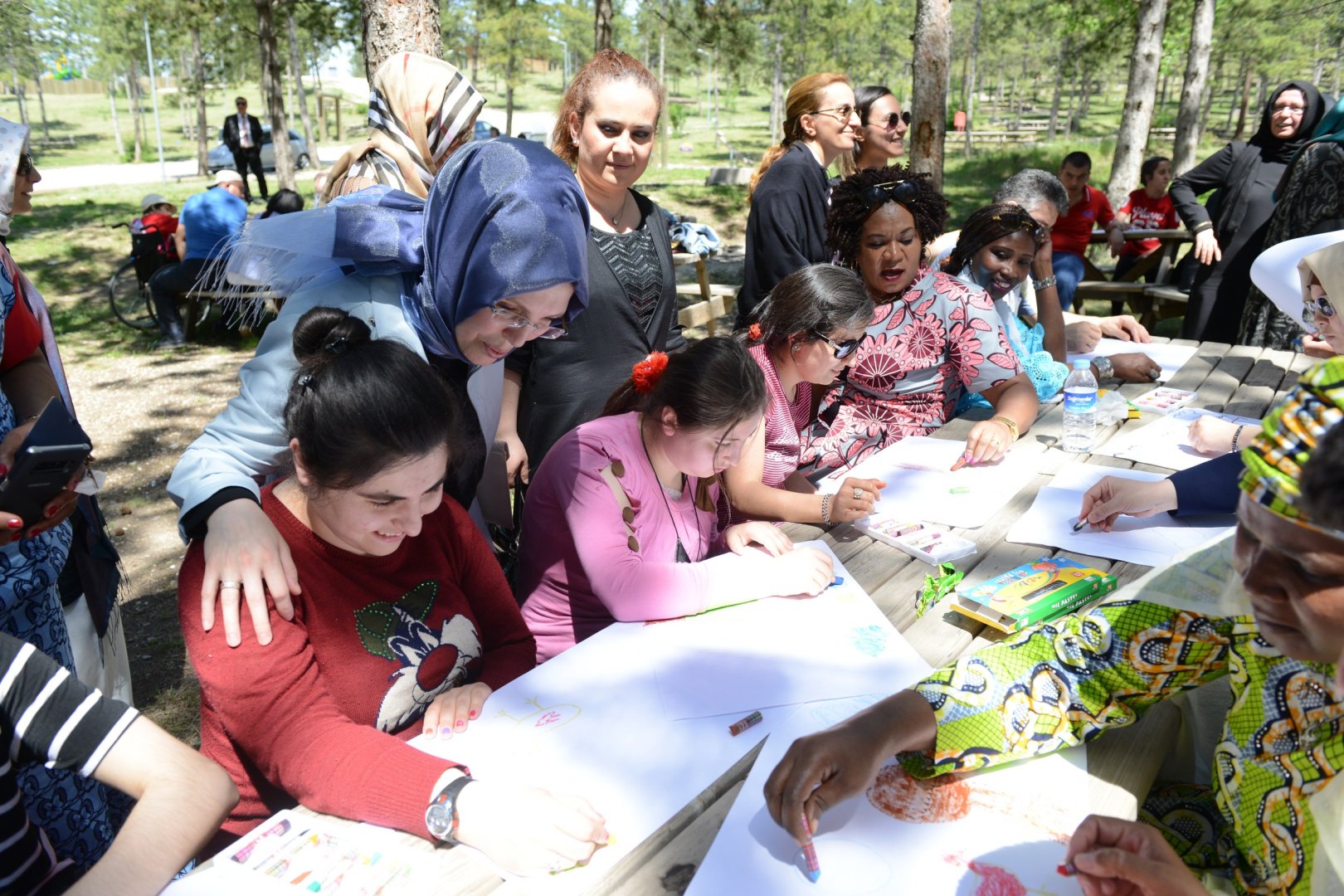 Çorum Belediyesi Veli Paşa Kadın Kültür ve Sanat Merkezinde kurslarını ve Sanat Sokağını gezen ASHOM heyeti ardından Engelli eğitim ve rehabilitasyon Merkezinin Bahabey Çamlığında Dünya Engelliler Haftası dolayısıyla gerçekleştirdikleri etkinliklere katıldı. Engelli öğrencilerle resim yapan, dans gösterilerini izleyen ASHOM heyetine Belediye Başkanı Dr. Halil İbrahim Aşgın’ın eşi Feyza Aşgın, Belediye Başkan Yardımcısı Turhan Candan, Belediye Meclis Üyesi ve AK Parti Çorum Kadın Kolları Başkanı Meryem Demir eşlik etti.