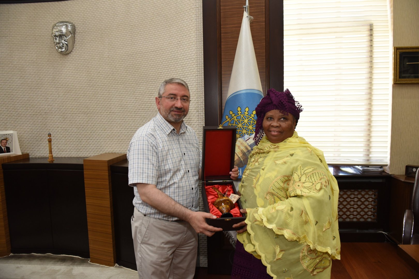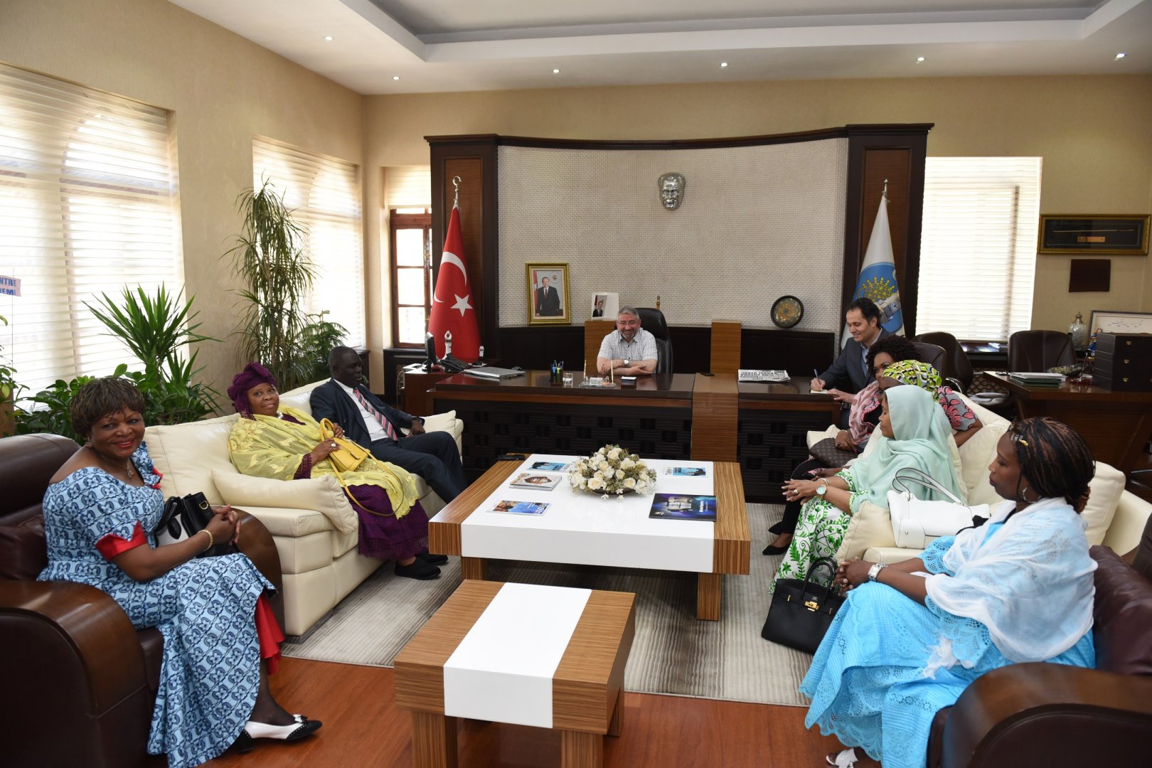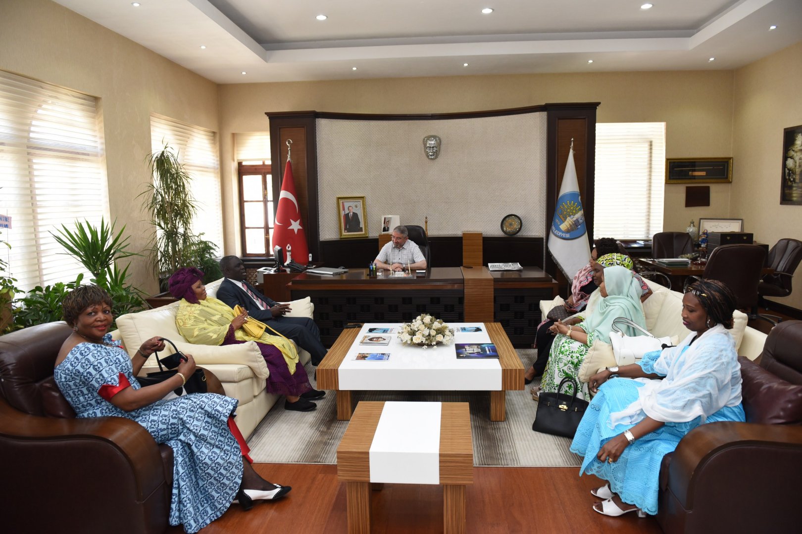 Çorum Belediyesi Kadın Kültür ve Sanat Merkezlerini ziyaret için Çorum’a gelen Afrika Büyük Elçi Eşleri Topluluğu (ASHOM) Belediye Başkanı Dr. Halil İbrahim Aşgın’ı makamında ziyaret etti.