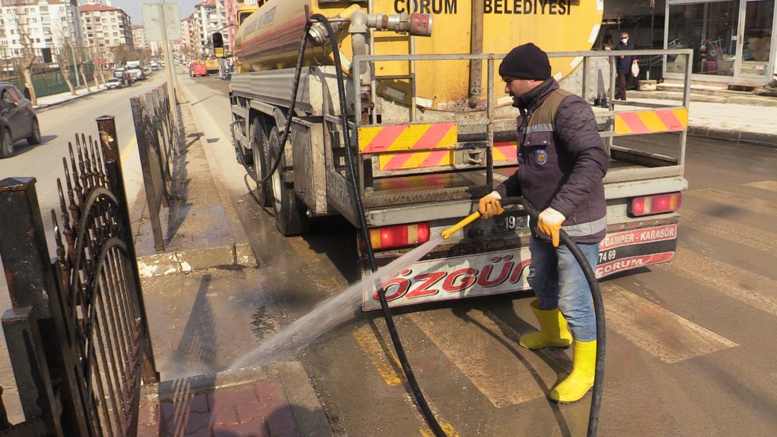 Son yılların en yoğun kar yağışının yaşandığı Çorum’da, karla mücadele çalışmaları ile takdir toplayan Belediyemiz, karların erimesiyle birlikte aynı tempoyla çalışmaya devam ediyor. Ekipler bu defa karla mücadele çalışmaları kapsamında buzlanmayı önlemek için yola serpilen tuzlu kum kalıntılarının temizliğini yapıyor.  Şehrin genelinde çalışma başlatan Belediyemiz ekipleri cadde cadde, sokak sokak temizliğe devam ediyor. Çalışmaları sırasında zabıta trafik ekipleri de anons yaparak park halindeki araçların kaldırılmasını sağlarken temizlik ekipleri de yolları ve yaya kaldırımlarını tazyikli su ile yıkadı.