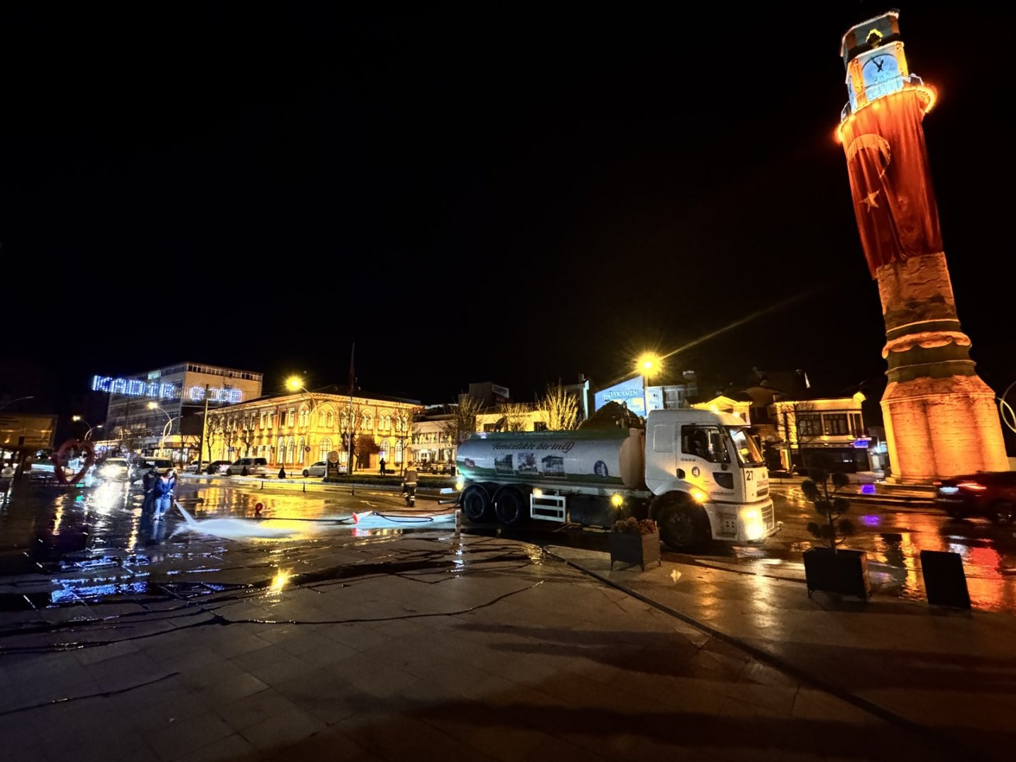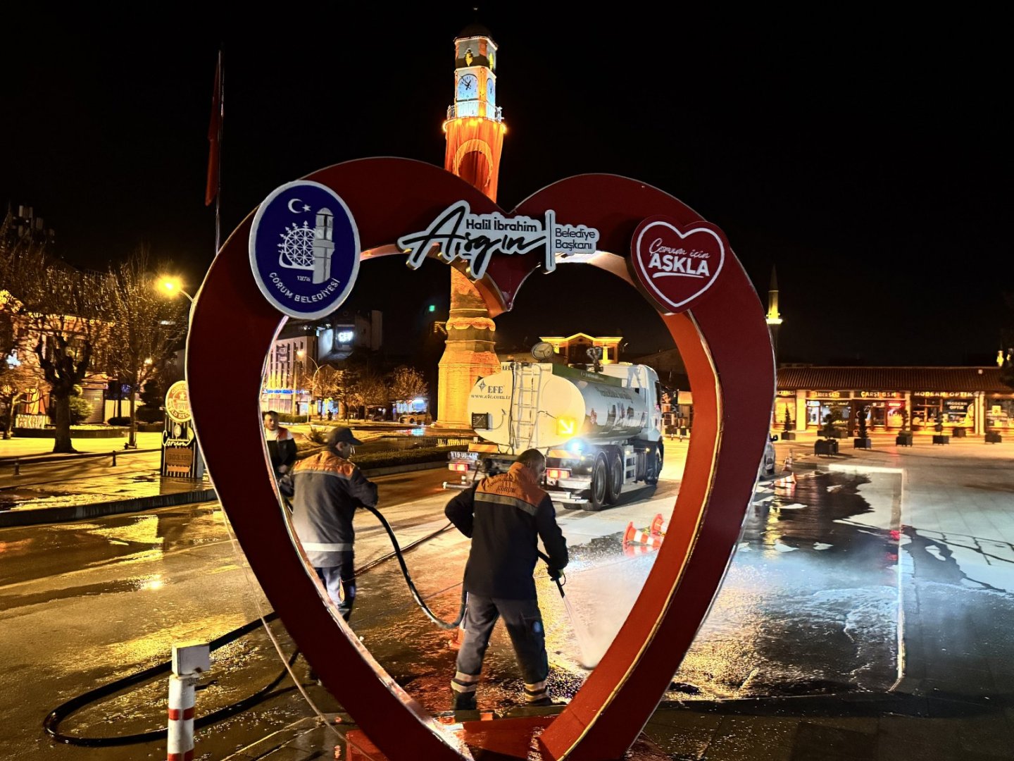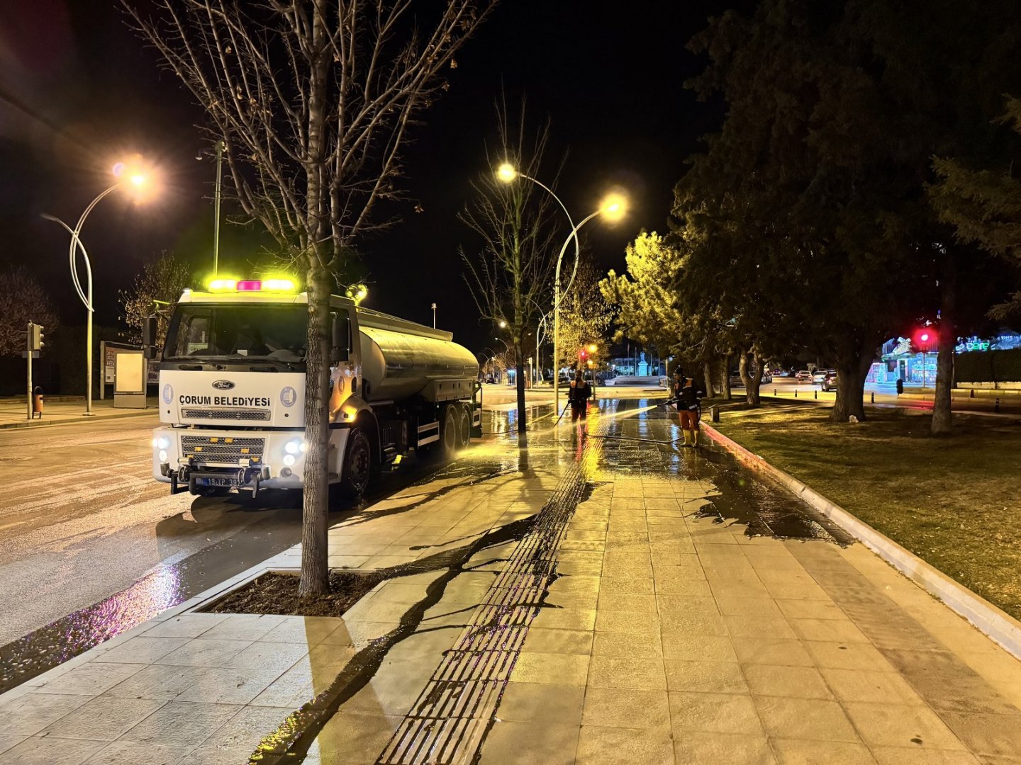 Çorum Belediyesi Temizlik İşleri Müdürlüğü’ne bağlı ekipler yaklaşan Ramazan Bayramı öncesinde şehrin en işlek caddeleri olan Gazi ve İnönü caddelerini gece boyu yıkayarak temizledi. Trafiği aksatmamak adına geç saatlerinde başlayan ve sahura kadar devam eden çalışmalarda ekipler hem kaldırımları hem de yolları temizleyerek bayrama hazırladı. Yol süpürme araçlarının da görev aldığı temizlik çalışması Recep Tayyip Erdoğan Caddesi,  Gazi ve İnönü Caddeleri ile detaylı şekilde temizlendi.