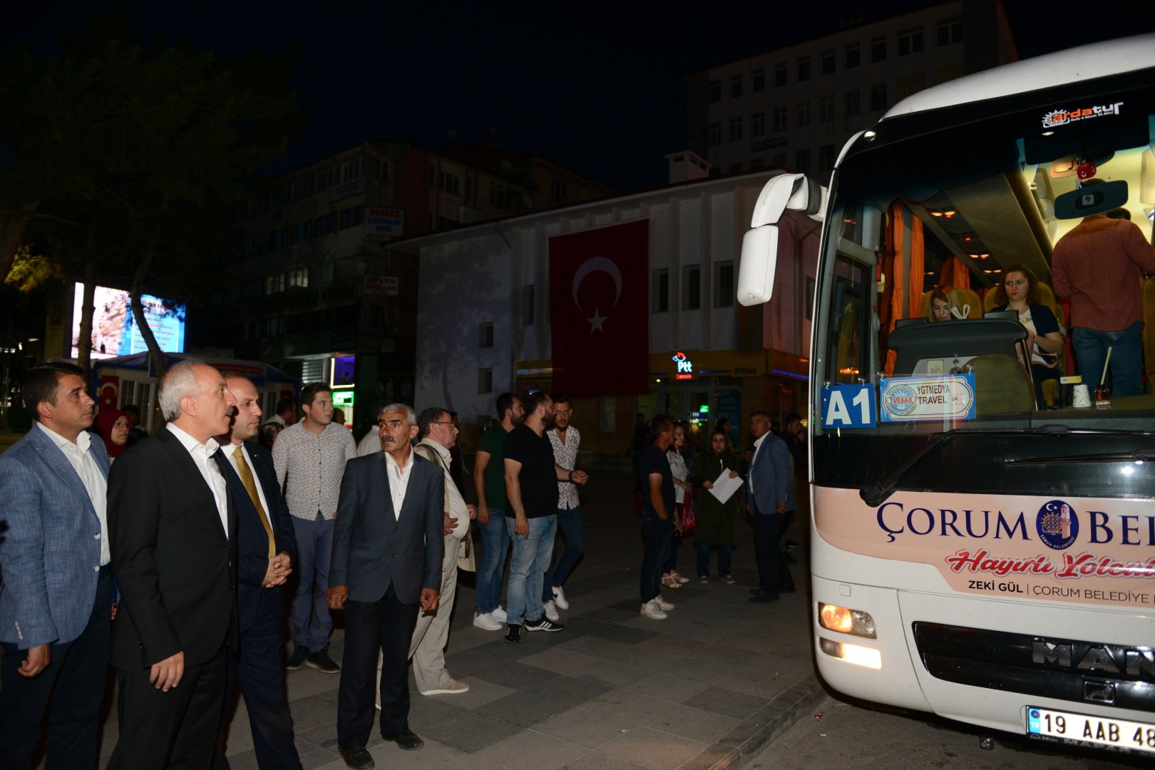 Kayıtların devam ettiği Çanakkale Gezileri için Çorum’dan hareket eden otobüsleri Belediye Başkanı Zeki Gül yolcu etti. Hürriyet Parkı önünden hareket eden otobüsleri uğurlamak için gelen Belediye Başkanı Zeki Gül, vatandaşlara hayırlı yolculuklar diledi. Otobüs içerisinde kısa bir konuşma yapan Belediye Başkanı Zeki Gül, Çanakkale’nin milletimiz için oldukça önemli bir yer olduğunu belirtti.