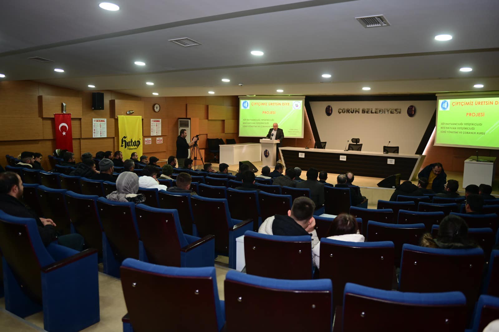 Çorum Belediyesi ve Çorum Halk Eğitim Müdürlüğü işbirliği ile başlatılan “Çiftçimiz Üretsin Diye” projesi ile Süt Hayvancılığı, Besi Hayvan Yetiştiriciliği ve Sürü Yönetimi-Çobanlık alanlarında kültür merkezlerimizde eğitim alacak kursiyerler bir araya geldi.