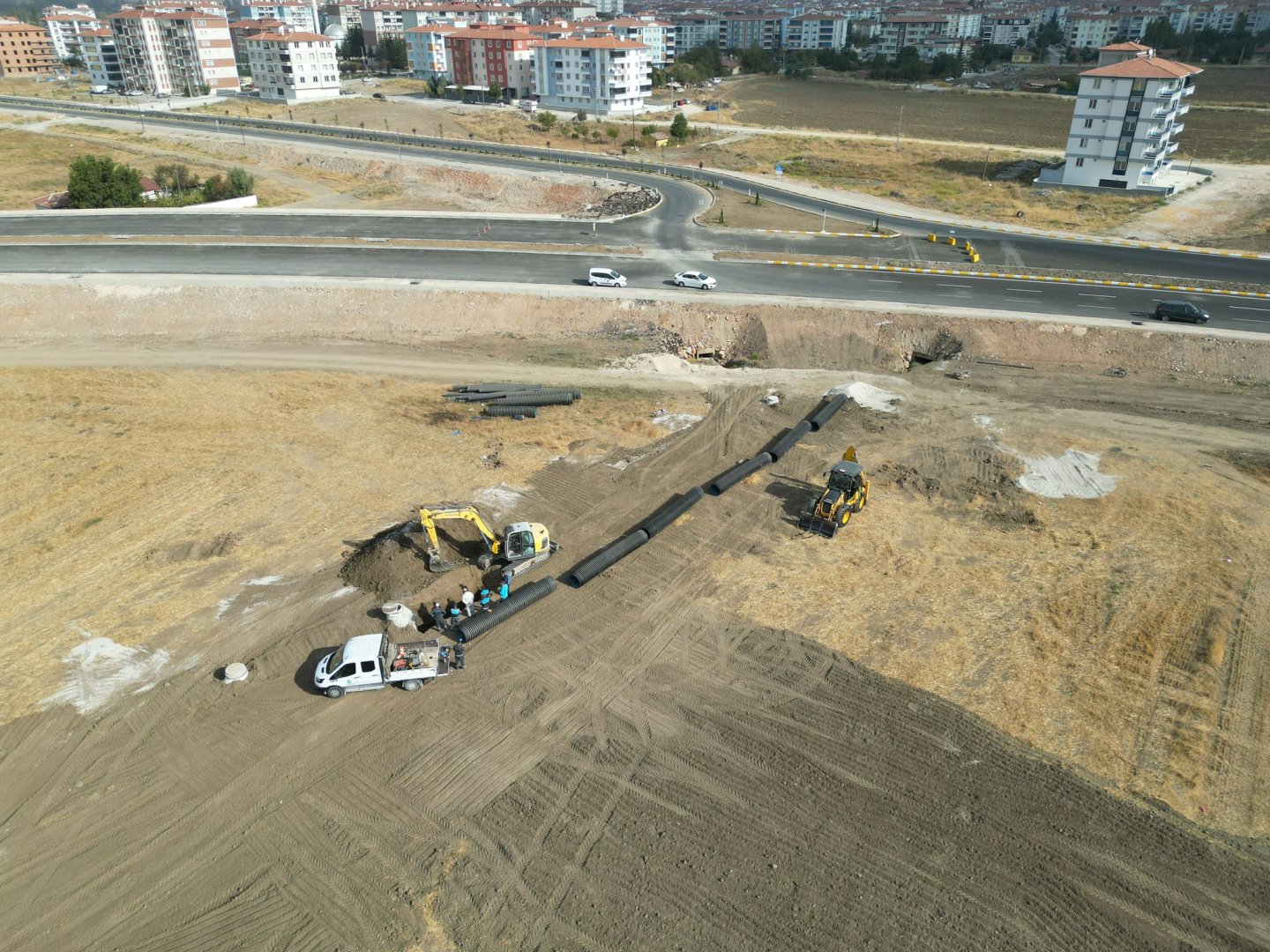 Yine menfez altından geçecek olan bağlantı yolu üzerinde yağmur suyu hattı çalışmalarının sürdüğünü belirten Belediye Başkanı Dr. Halil İbrahim Aşgın,  “1000’lik borularla dereye kadar 1800 metrelik yağmur suyu şebekesi döşenerek şehir altyapısını güçlendiriyoruz.” dedi.