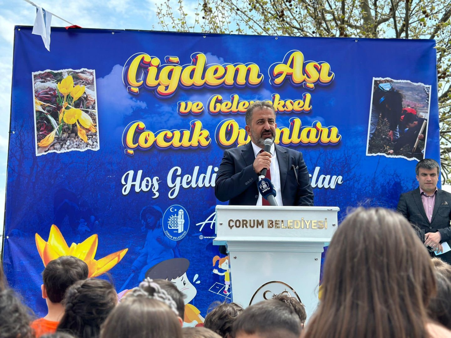 Çorum Belediyesi, çiğdem aşı geleneğini ve kültürel miraslarımızdan olan çocuk oyunları yaşatmak amacıyla "Çiğdem Aşı ve Çocuk Oyunları Şenliği" düzenledi.  Baharın müjdecisi olan çiğdem çiçeklerini öğrencilerle birlikte toplanmasının ardından, etkinliğin devamı olan çiğdem aşı ve çocuk oyunları şenliğini de Millet Bahçesi’nde yüzlerce öğrenci ve vatandaşın katılımı ile gerçekleşti.