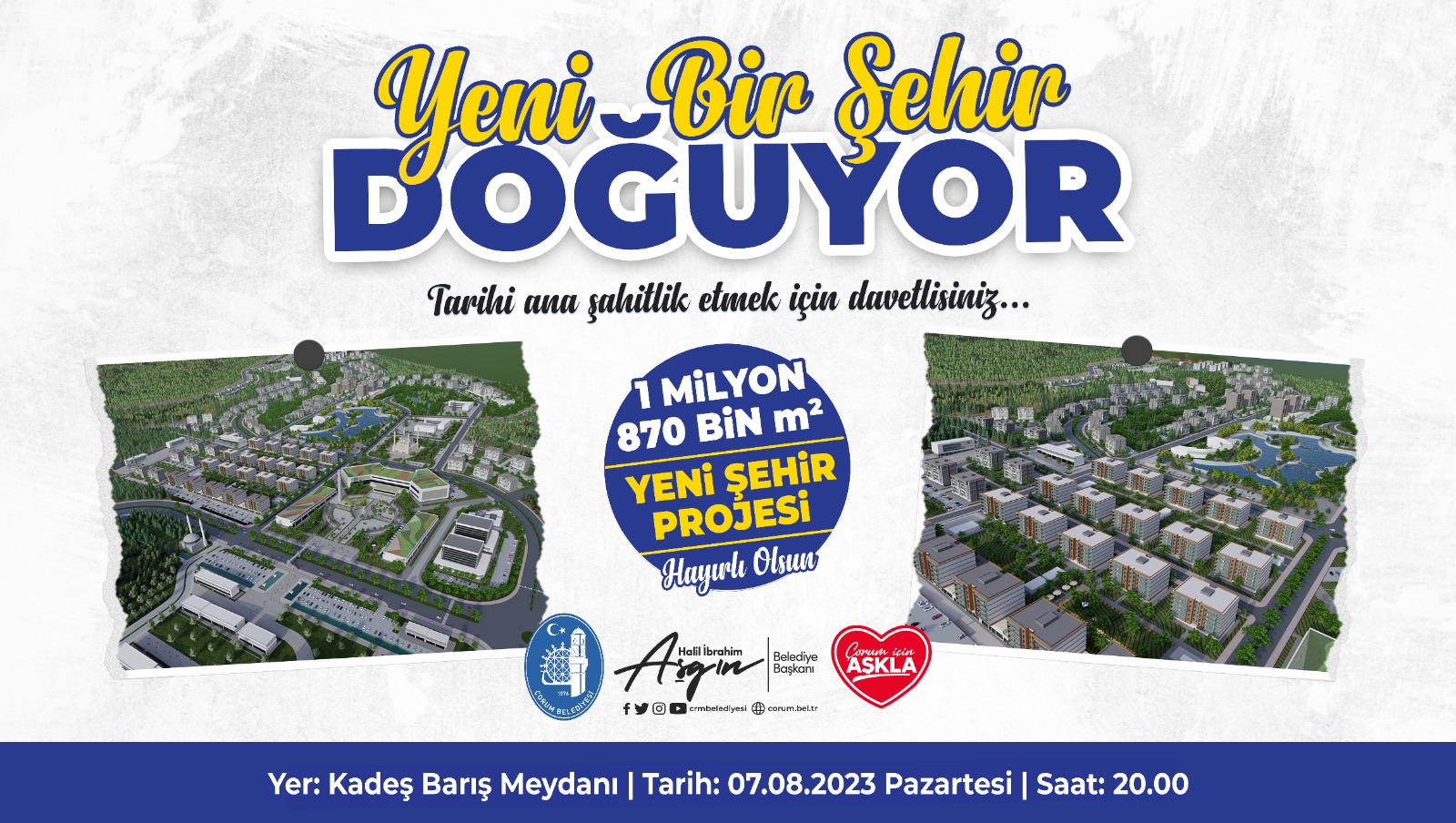 Şehrin geleceğine dönük büyük bir yatırımı Çorum’a kazandıracaklarını açıklayan Belediye Başkanı Dr. Halil İbrahim Aşgın “Burası toplam 1 milyon 870 bin m2, çevreyoluna da cephesi olan muazzam bir arazi. ‘Bu şehri beraber yöneteceğiz’ sloganıyla, burada nasıl bir planlama yapabiliriz diye toplumun her kesimi ile istişareler yaptık. Şehrin farkı kesimleri, kadınlar, gençler, çalışan insanlar nasıl bir planlama istiyorsa o yönde görüşlerini bizlere ilettiler.  Çorum’a değer katacak her türlü detayı düşünerek yeni bir yapılaşmayı planladık. Şehrimize kazandırdığımız bu muazzam arazi Çorum’un modern yaşam alanı olacak.” dedi.