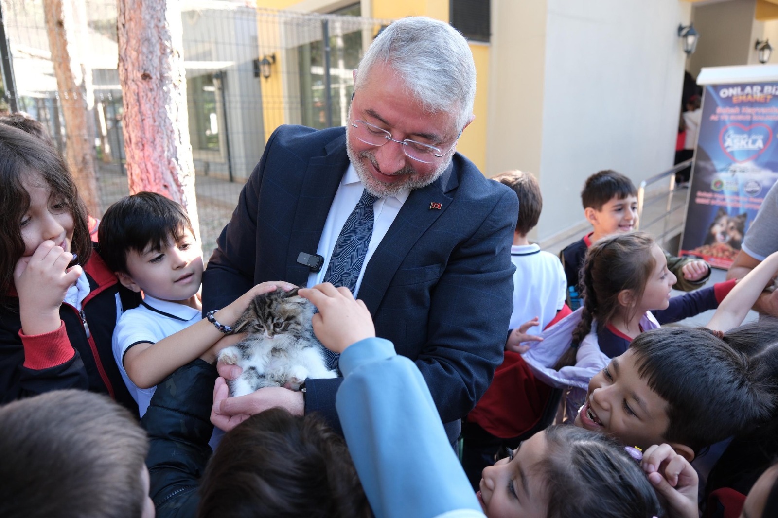 Belediye Başkanı Dr. Halil İbrahim Aşgın Sahipsiz Sokak Hayvanları Rehabilitasyon Merkezini gezmeye gelen öğrencilerle yakından ilgilenirken çeşitli ikramlarda da bulundu.
