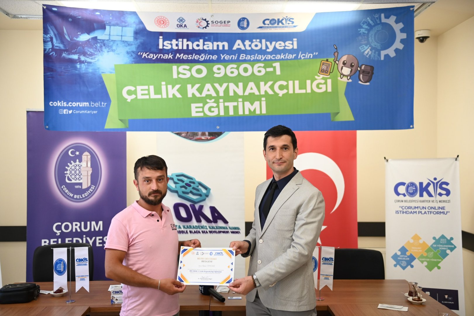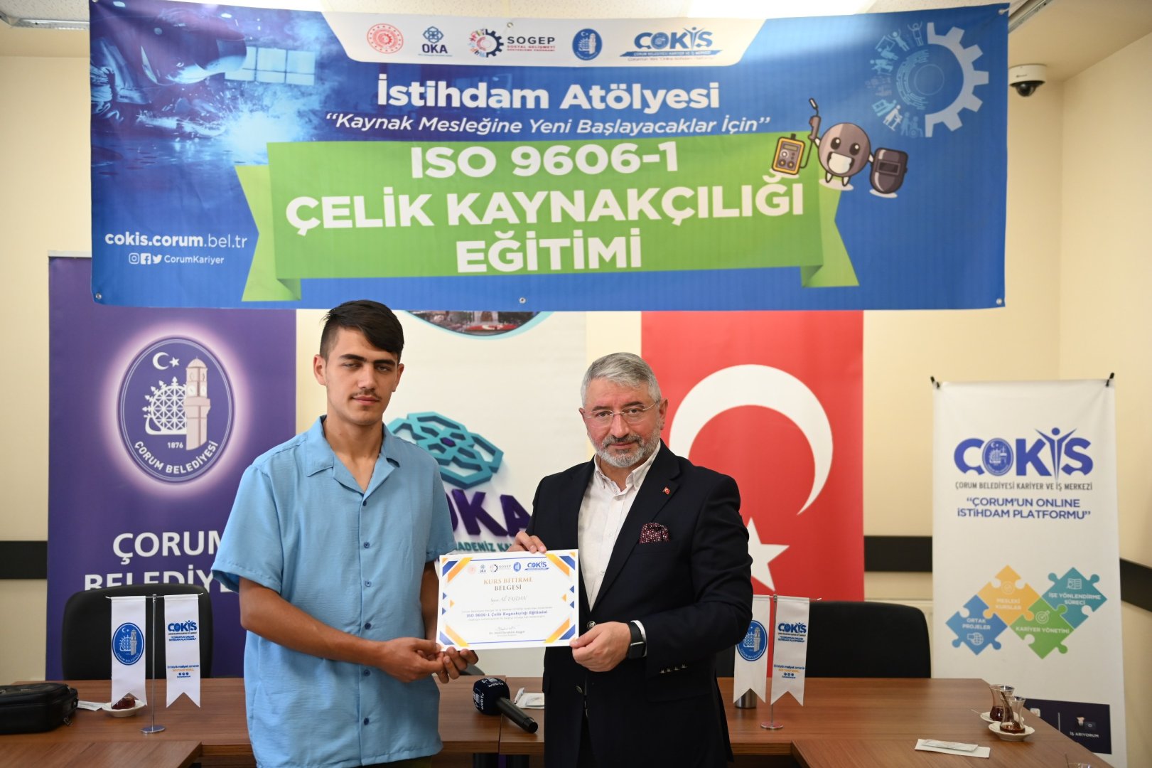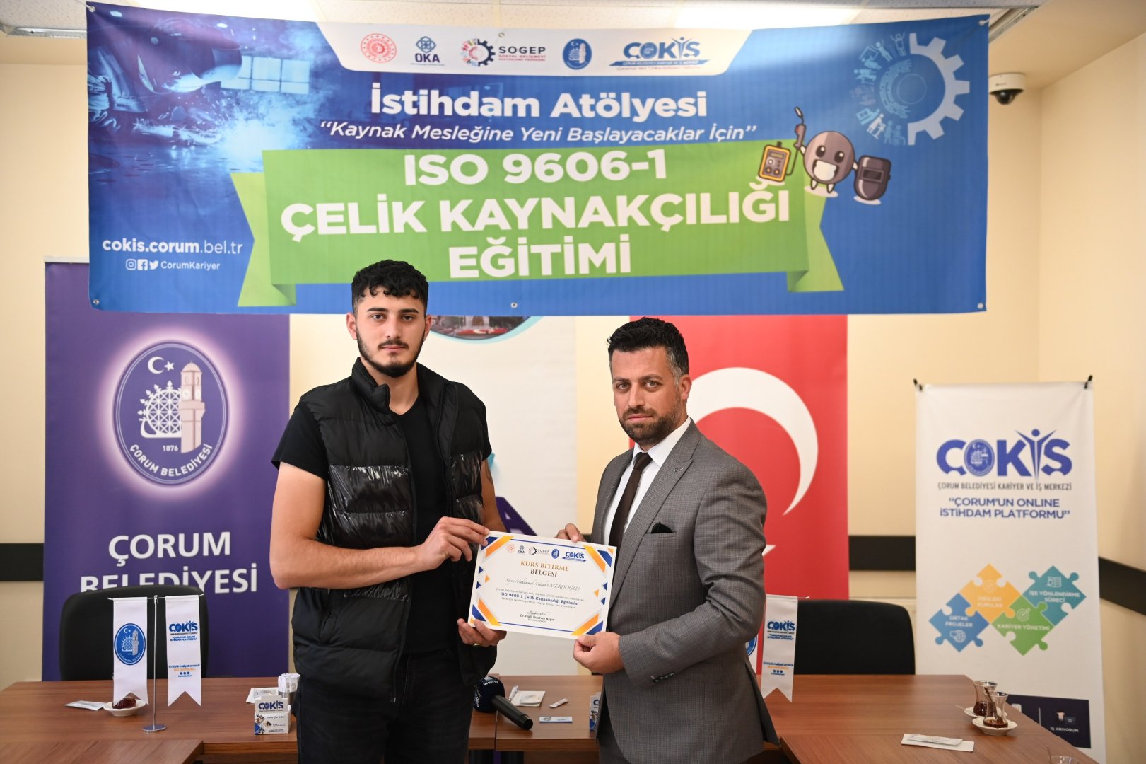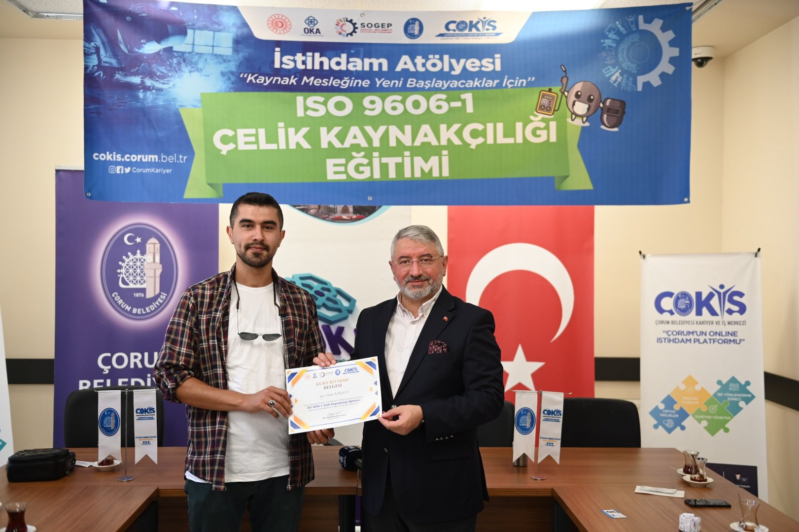 eğitimlerini tamamlayarak sertifika almaya hak kazanan çelik kaynakçılık