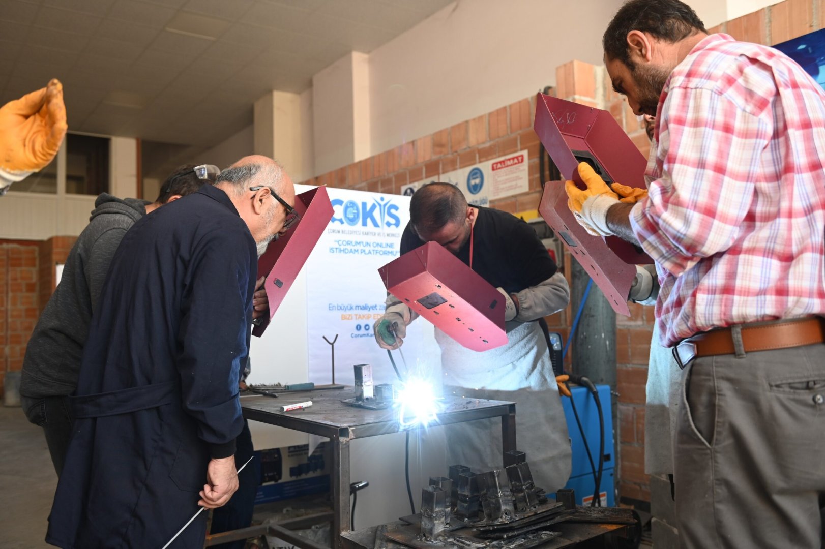 Belediyemiz Kariyer ve İş Merkezi (ÇOKİŞ)’in teorik ve uygulama eğitimlerinin yer aldığı İstihdam Atölyesi’nde kalifiye elemanlar yetişiyor. Bu kurslardan birisi olan kaynakçılık kursuna katılarak sertifika almaya hak kazanan 14 kursiyer sertifikalarını Belediye Başkanımız Dr. Halil İbrahim Aşgın’dan aldı.