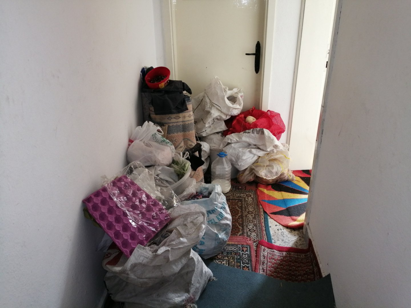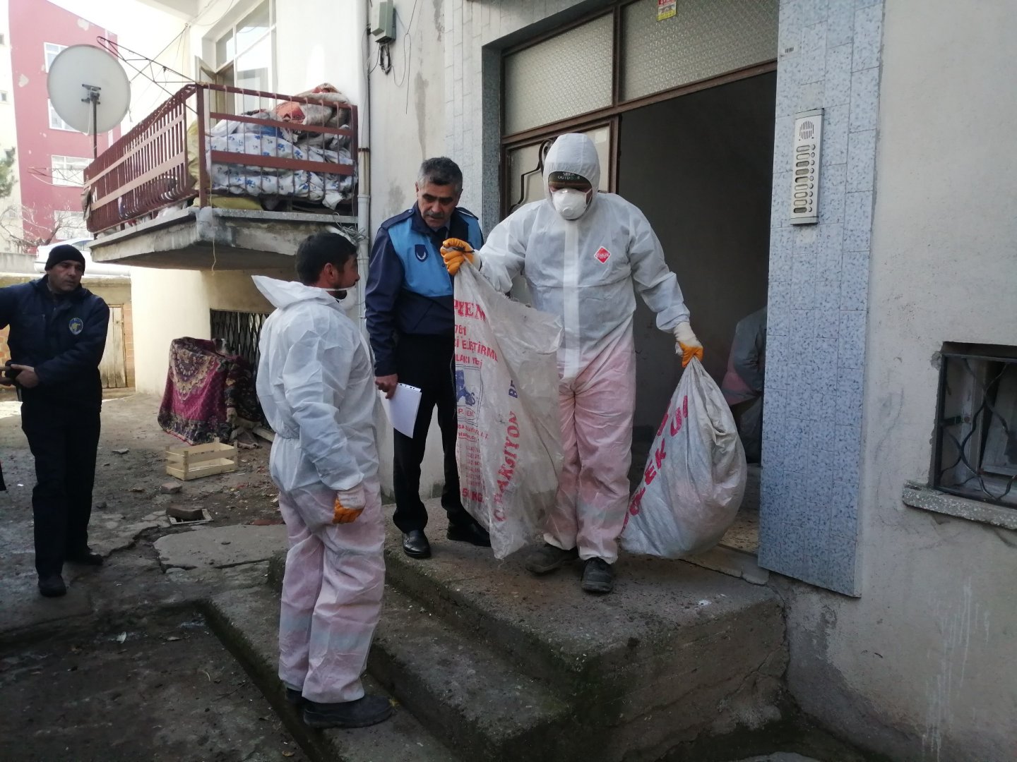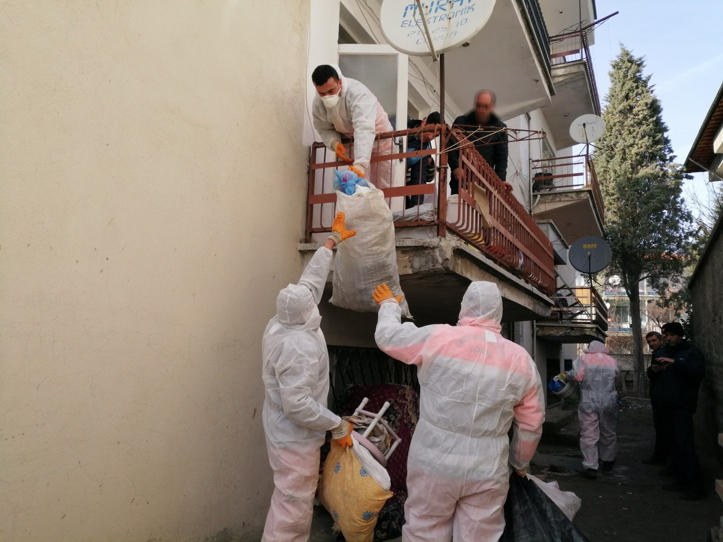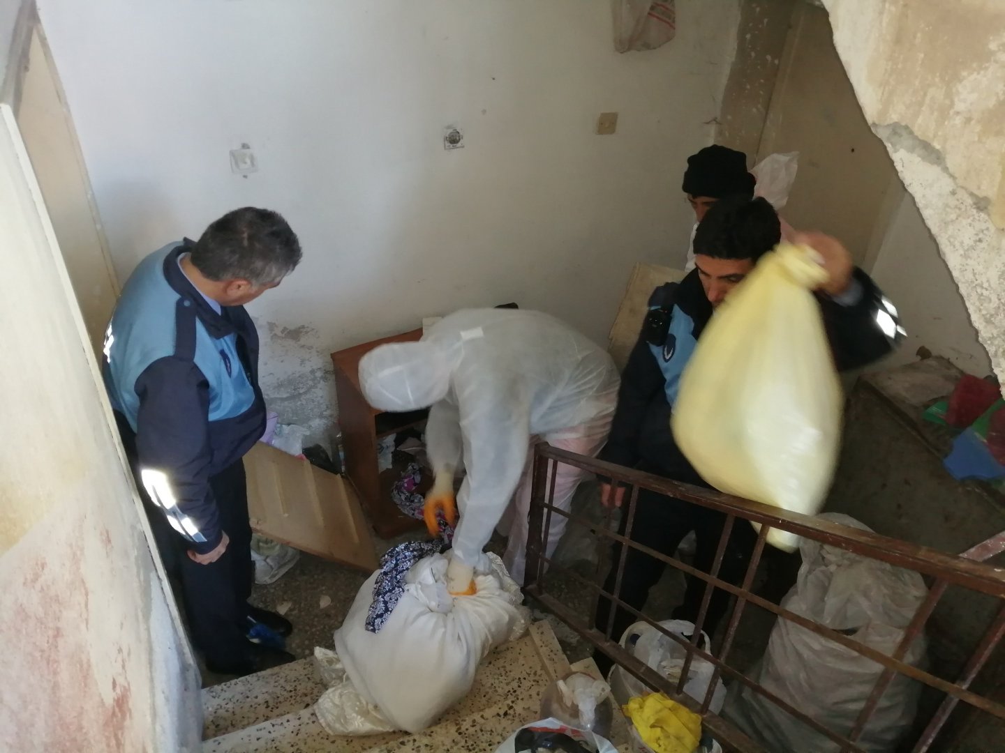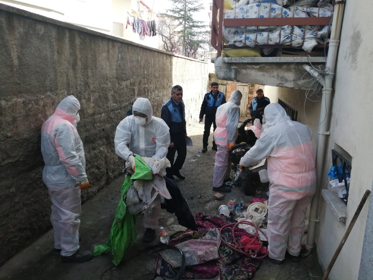 İl Umumi Hıfzıssıhha Meclisi kararıyla mevcut çöplerin haşere üretmesi, kesif kokularının oluşması, sağlığı tehdit eden diğer unsurların ortaya çıkması,hanede oturan kişilerin ve çevre bina sakinlerinin sağlığını tehdit etmesi sebebiyle ivedi olarak boşaltılması ve çöplerin bertaraf edilmesi yönünde karar alındı. Polisin çevresinde güvenlik önlemi aldığı binaya giren Çorum Belediyesi Zabıta Müdürlüğü ve Temizlik İşleri ekipleri binada yaptıkları çalışmayla evdeki çöpleri temizledi.