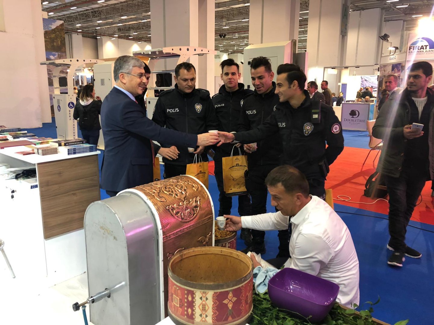 Çorum standını ziyaret edenlere tanıtım broşürü, harita, tanıtım filmin, boyama kitabı gibi materyallerle birlikte sıcak leblebi ikramı yapıldı.