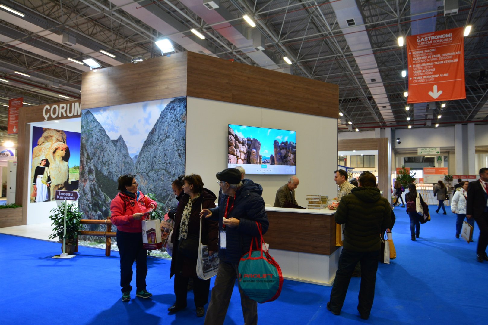 Çorum’un tarihi, doğal ve kültürel değerlerini tanıtmak ve turizm sektörü temsilcileriyle buluşmak amacıyla Çorum Valiliği ve Çorum Belediyesi İl Özel İdaresi ve Çorum Ticaret Sanayi Odası işbirliğiyle fuara katılım sağlandı. Orta Karadeniz Kalkınma Ajansı mali desteğiyle A holu B206 numaralı alanda açılan stantta Çorum Belediye Başkanı Zeki Gül, Başkan Yardımcısı Turhan Candan, İl Kültür ve Turizm Müdürü Ömer Arslan, Şube Müdürü Sümeyra Şengül, Belediye Kültür ve Sosyal İşler Müdürü Mustafa Ercan, Anitta Otel Müdürü Hasan Özer Gökmen, Anitta Otel’den Tekin Teki, Çorum ve  Nikonya Turizm Acentasından A. Ezgi Gökmen yer alarak tanıtım çalışmalarına destek oldu.