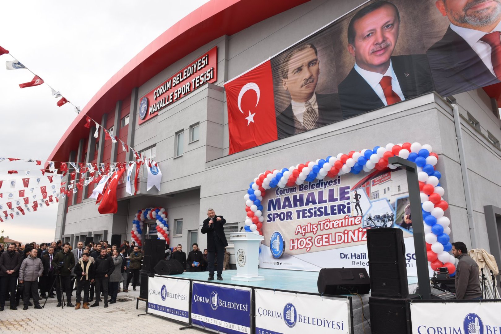 Sözlerine sabah saatlerinde Suriye’nin İdlib şehrinde rejim tarafından şehit edilen 6 askerimize Allah’tan rahmet, 9 yaralı askerimize de acil şifalar dileyerek başlayan Belediye Başkanımız Dr. Halil İbrahim Aşgın ise sporun birlik ve berabirliğe faydasından bahsederek; “Sporun bir çok faydası var. Birlik ve beraberliğe faydası daha büyük. Bir güreşçimiz uluslararası müsabakada zafer kazandığında o güreşçimiz Alevi mi, Sünni mi, Çerkez mi diye bakmıyoruz. Ay yıldızlı bayrağımızı dalgalandırıyor diye milli bir şuurla hepimiz alkışlıyoruz. Dolayısıyla sporun sadece biz spor olsun diye düşünmüyoruz. Aynı zamanda birliğimize, beraberliğimize bir maya olarak düşünüyoruz. Bu düşünce ile Ulukavak ve Kale Mahallemize toplam 7 milyon TL değerinde iki tane modern spor tesislerini Çorum’a kazandırmanın mutluluğunu yaşıyoruz.” ifadelerini kullandı. Mahalle spor salonlarında ve semt parklarında herkesin spor yapabileceği alanlar oluşturarak sporu sağlıklı yaşamın bir parçası haline getirmeyi hedeflediklerini belirten Aşgın, tüm alanlarda olduğu gibi spor alanında da önemli çalışmalar yaptıklarını belirtti. Başkan Aşgın, ” Spor tesislerimizin tamamı tüm Çorum halkının hizmetindedir. Her yaştan hemşehrimiz buralara gelip sporlarını yapabilirler. 7’den 70’e herkes en az bir spor dalı ile ilgilenmeli.” diye konuştu. Belediyemiz tarafından şehrin dört bir yanında hizmete sunulan spor tesislerinin Çorum halkına spor kültürünü aşılamanın yanında geleceğin sporcularının da buralardan yetişeceğini ifade eden Aşgın, bu tesislerde yetenekli gençleri keşfedip onları hem Çorum’un hem de spor hayatına kazandırmak amacında olduklarını vurguladı. Başkan Aşgın, “Belediyemiz bünyesinde faaliyet gösteren amatör spor branşlarımızla önemli başarılar elde ediyoruz. Bu anlamda da bir lokomotif vazifesi görecek” şeklinde konuştu.