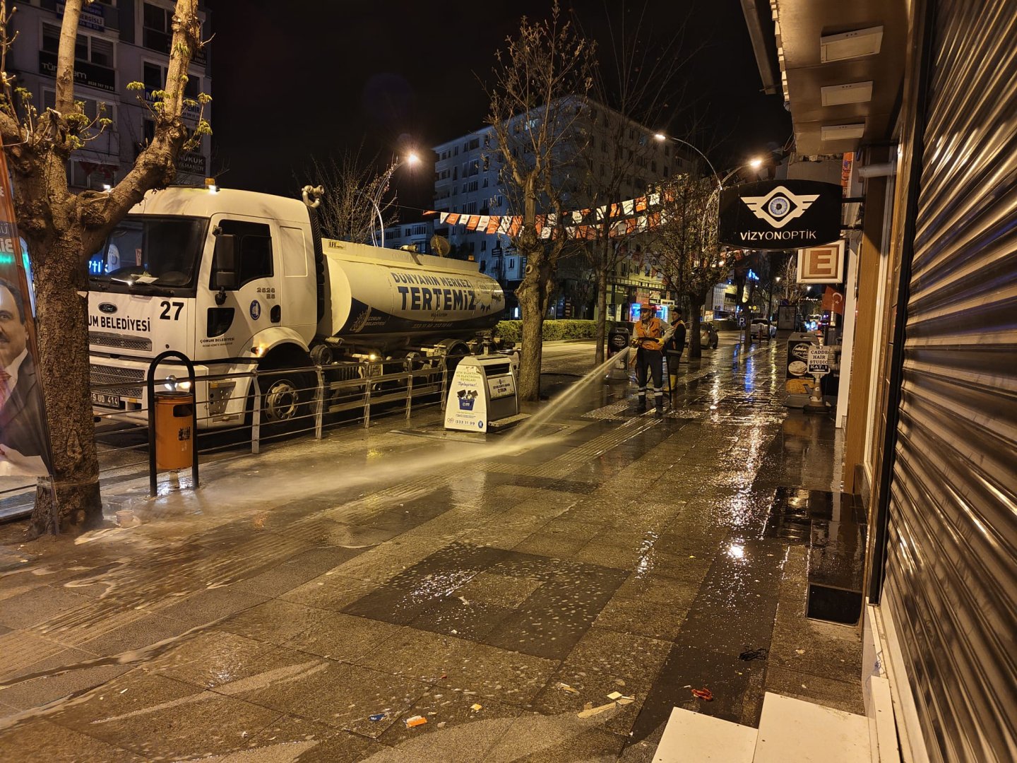 Çorum Belediyesi, Ramazan Bayramı öncesinde hummalı bir temizlik çalışması başlattı. Şehrin işlek caddeleri ve kaldırımları yıkanarak temizleniyor.