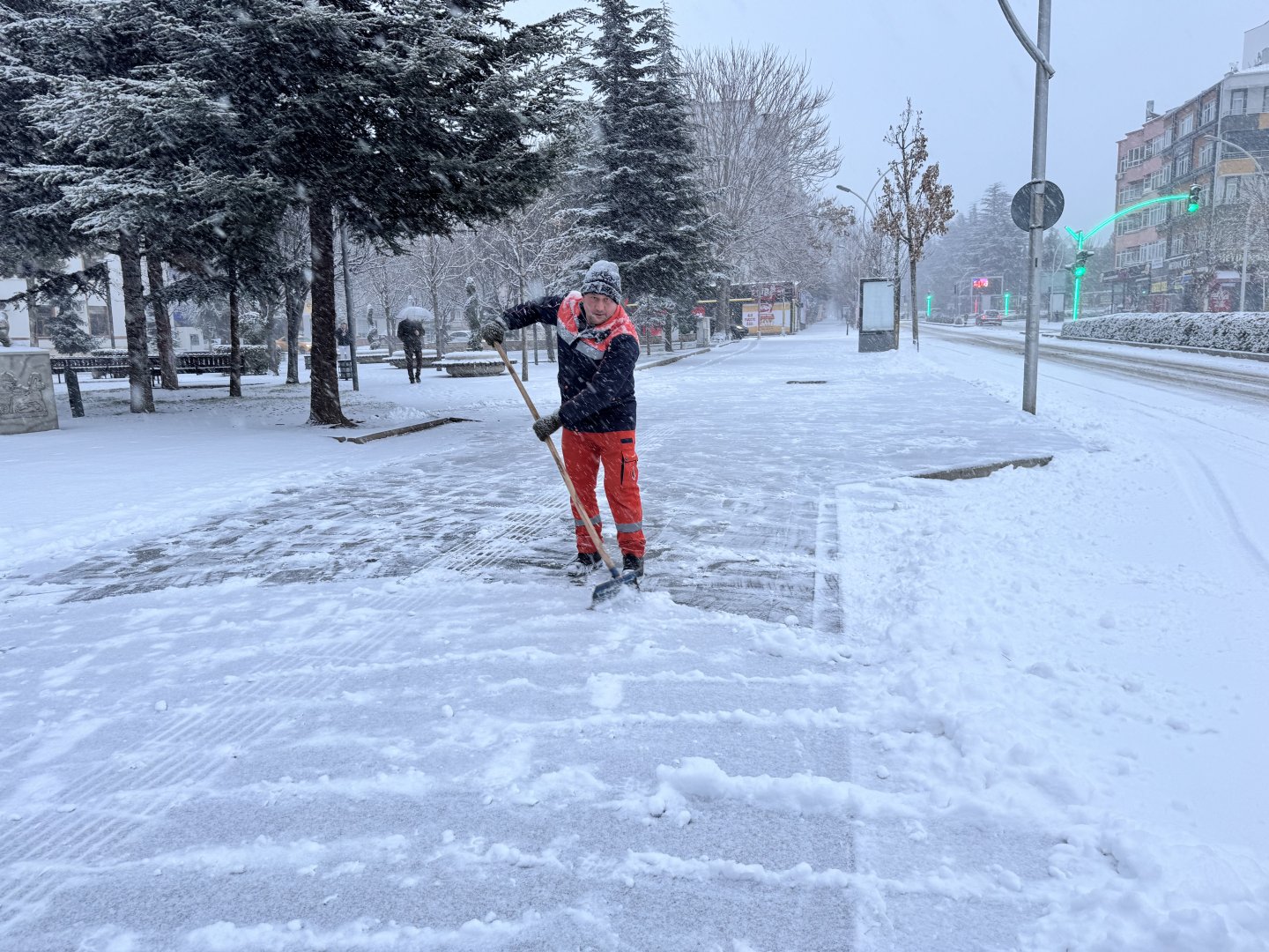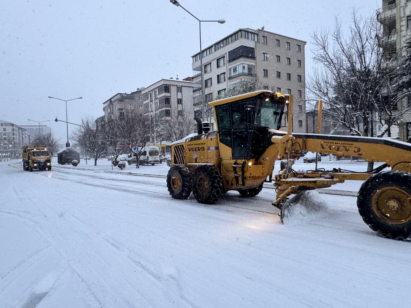 Çorum’da sabah erken saatlerde başlayan kar yağışıyla birlikte Çorum Belediyesi, vatandaşların mağdur olmamaları adına tüm ekipleriyle sahadaydı.