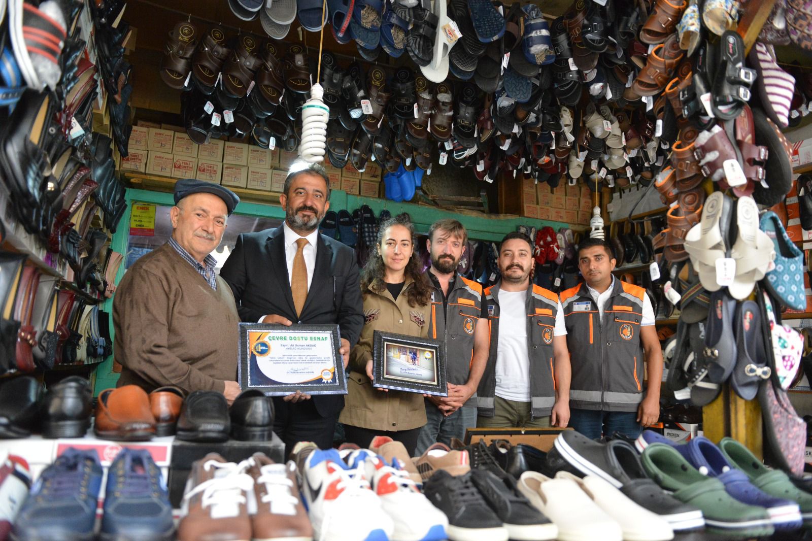 Temizlik İşleri Müdürü Tuğçe Ünal ile birlikte teknik personelinin de hazır bulunduğu ziyarette Belediye Başkan Yardımcısı İsmail Yağbat, Belediye Başkanı Dr. Halil İbrahim Aşgın’ın selamını ileterek Çevre Dostu Esnaf’a teşekkür belgesi ve iş yerinin önünü temizlerken çekilen fotoğrafını hediye etti.