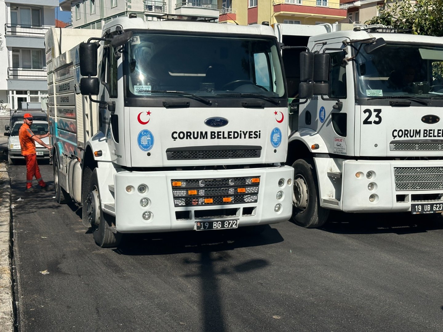 Çorum Belediyesi, sıcak hava koşullarının neden olduğu olumsuzlukları bertaraf etmek amacıyla temizlik faaliyetlerini artırdı.
