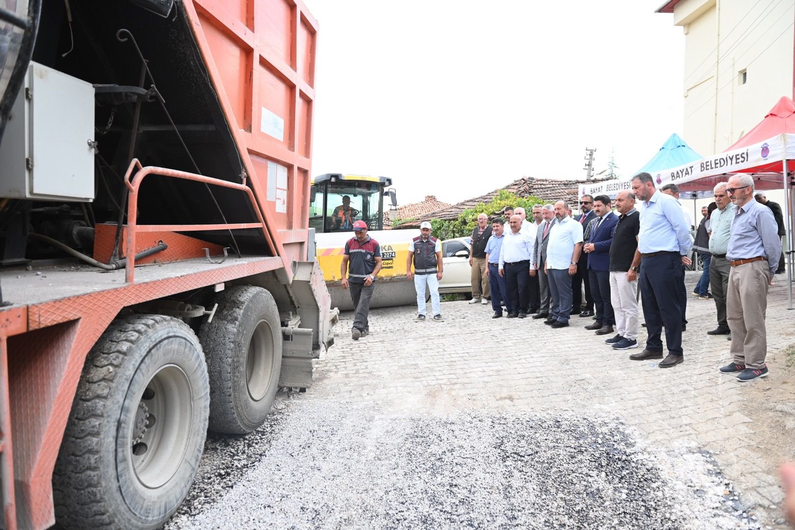 Çorum Belediyesi, ilçelere asfalt desteğini sürdürüyor. Fen İşleri Müdürlüğüne bağlı asfalt ekipleri, Bayat ilçesinde başlattıkları asfaltlama çalışmalarına devam ediyor.