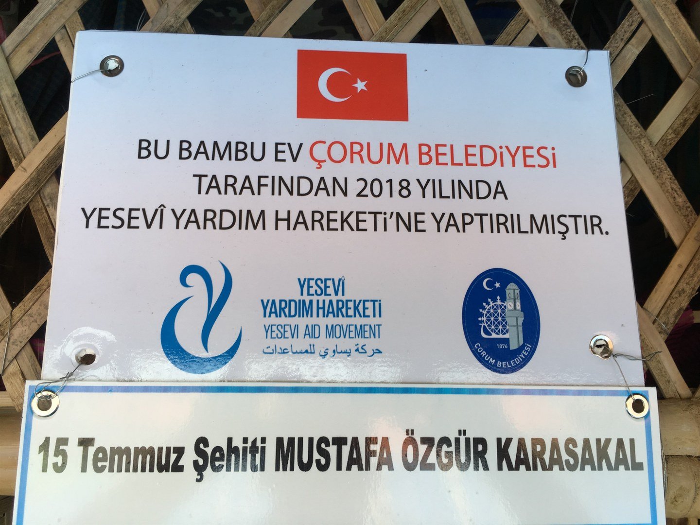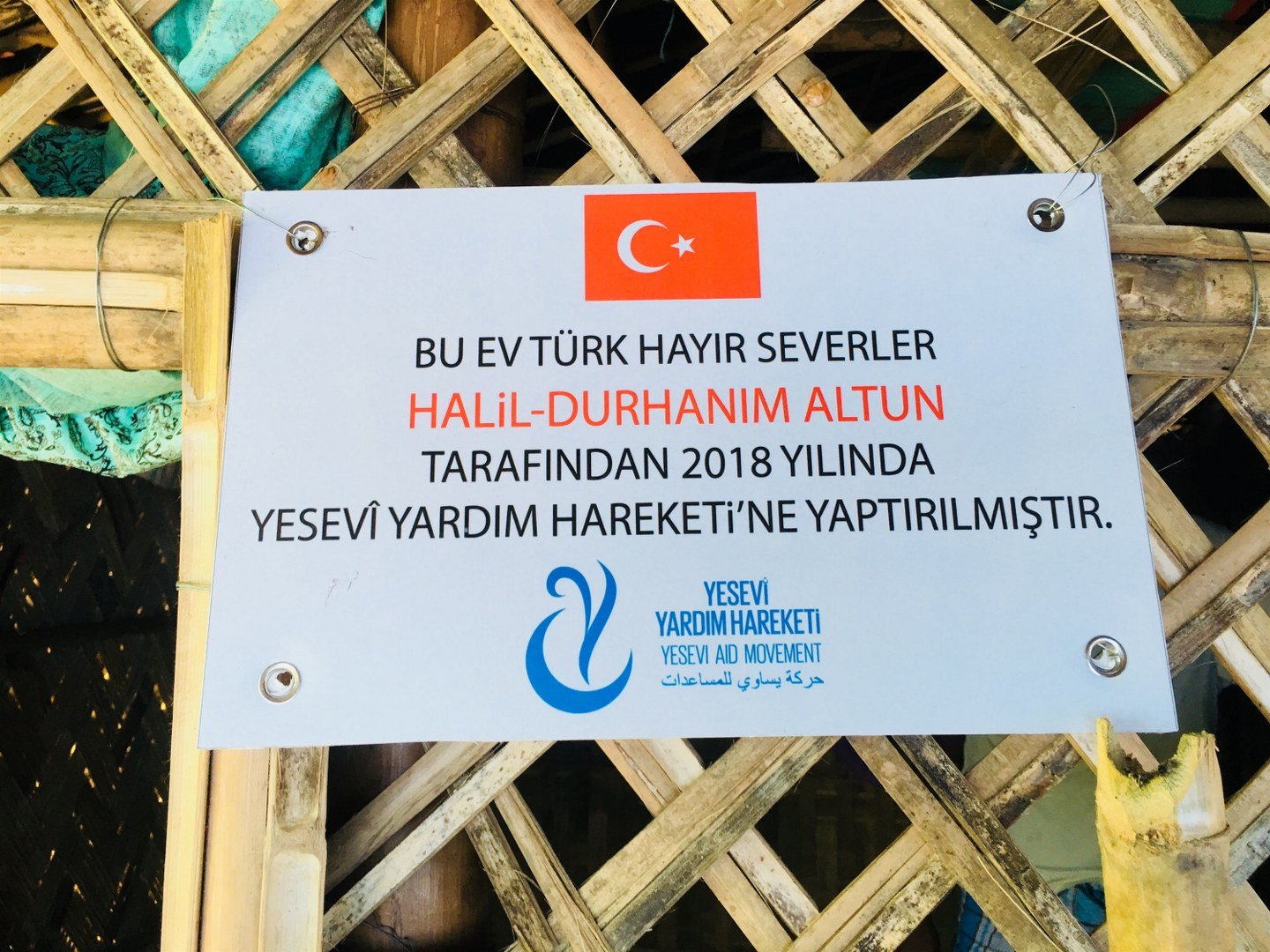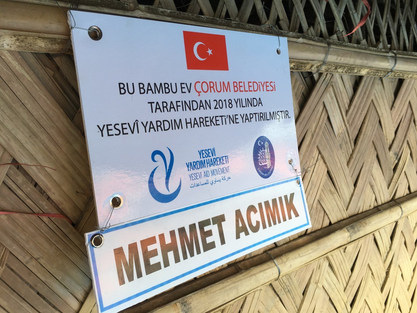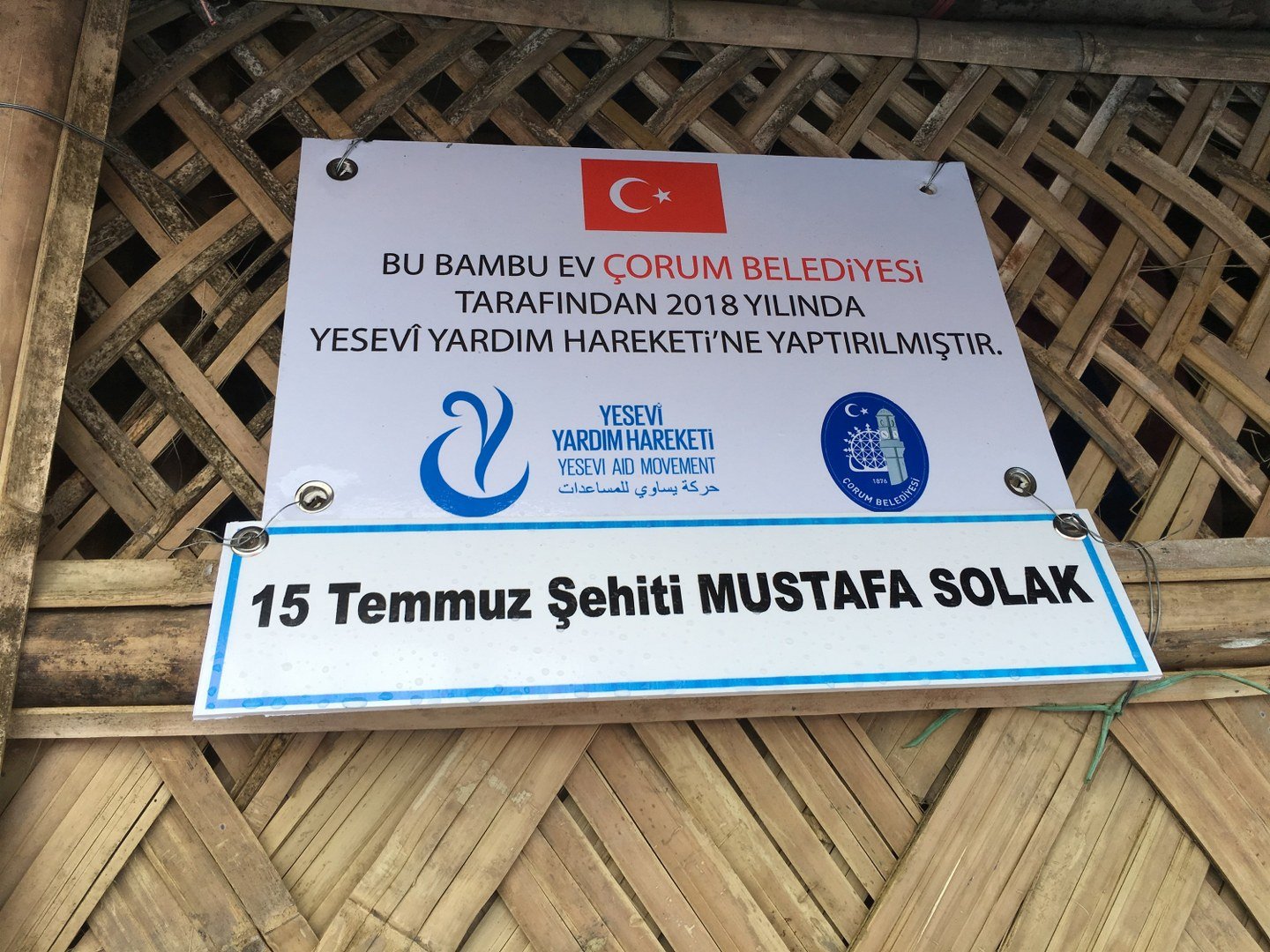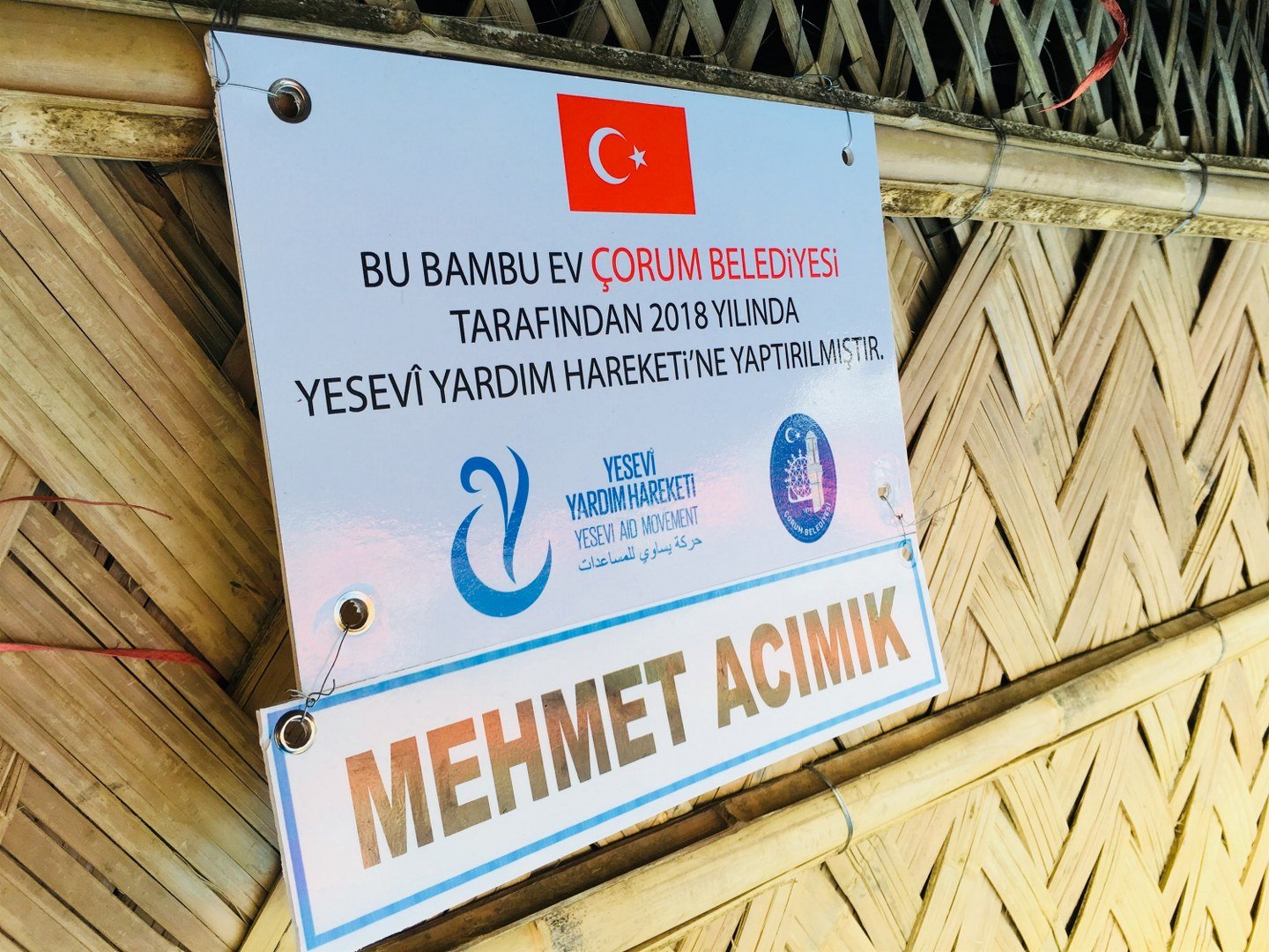 Daha önce de Arakan Kampında kalan Arakanlı Mültecilere gıda ve çeşitli yardımlar yapan Çorum Belediyesi, Yesevi Yardım Hareketi ve Alaca Anadolu İmam Hatip işbirliği ile Arakan Kampında kalan mültecilere bambu ev yaptırdı. Bambu evler, Yesevi Yardım Hareketi gönüllülerince mültecilere teslim edildi.