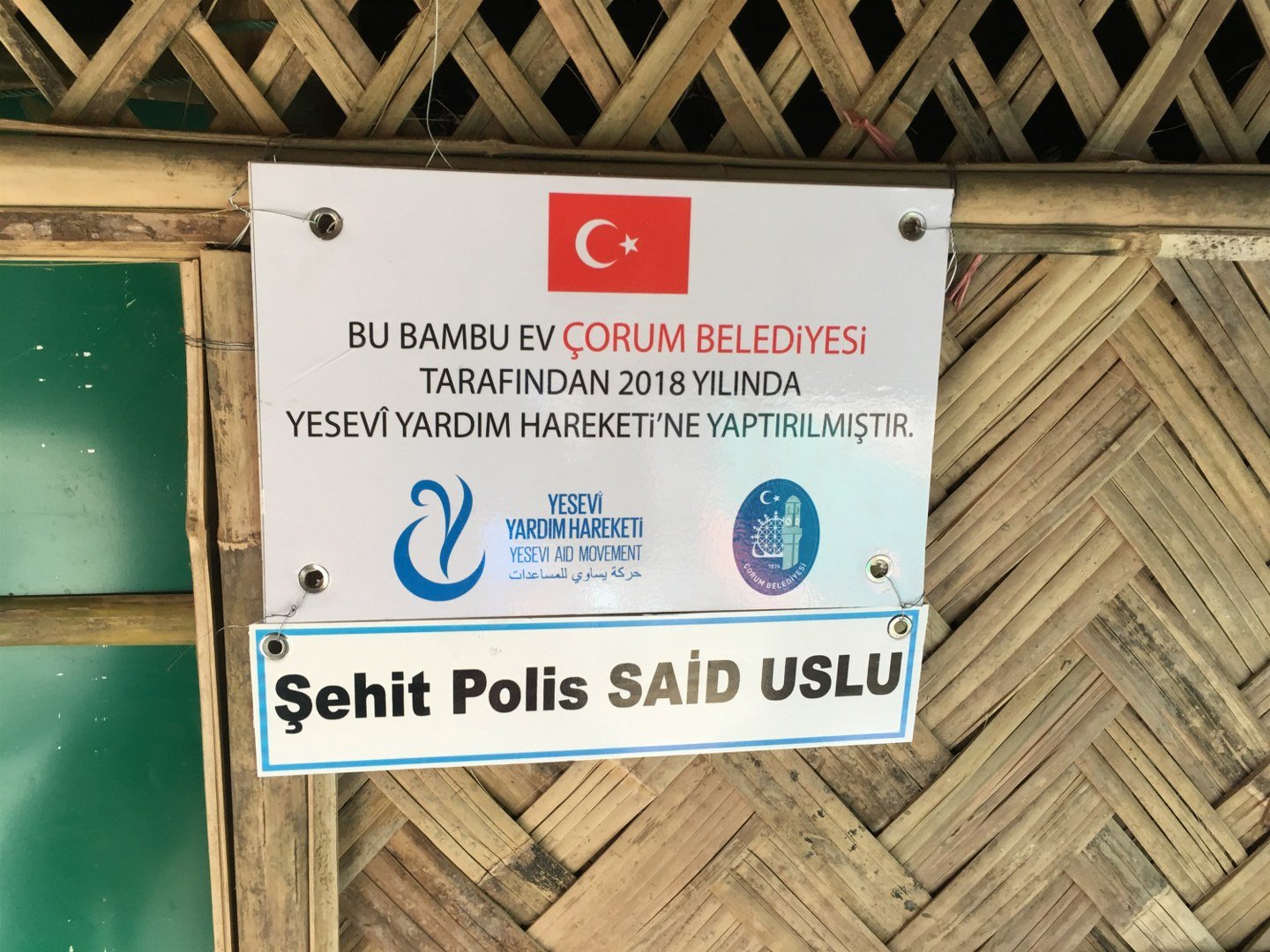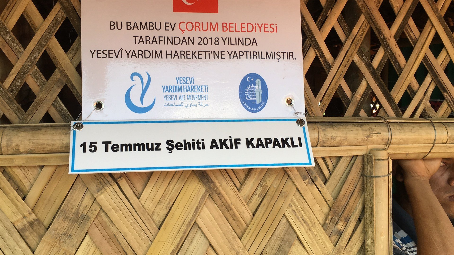 Arakan’da ihtiyaç sahiplerine yapılan bambu evlere Çorumlu 15 Temmuz Şehitlerinin, Çorumlu Şehit Öğretmen Şenay Aybüke Yalçın ve diğer şehitlerin isimleri verildi.