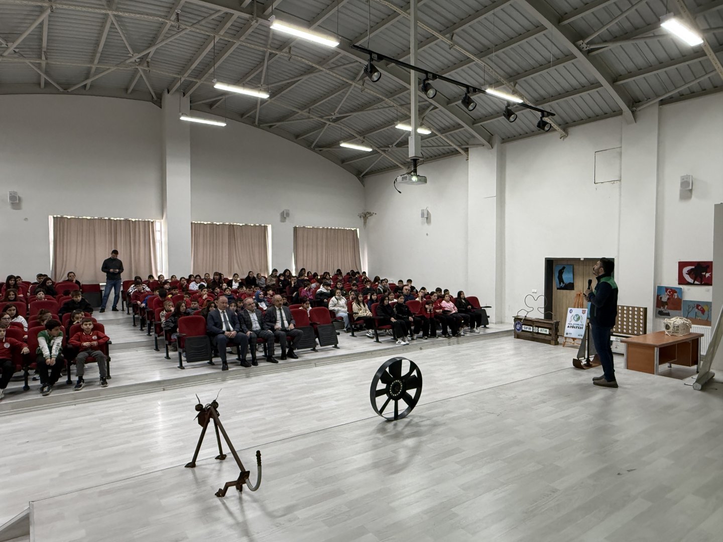 30 Mart Uluslararası Sıfır Atık Günü etkinlik programı kapsamında Hacı Bektaş Veli Ortaokulu konferans salonunda gerçekleştirilen etkinliğe Belediye Başkan Yardımcısı Turhan Candan, Okul Müdürü Muharrem Olukçu, İklim Değişikliği ve Sıfır Atık Müdürü Furkan Acar, öğretmenler ve öğrenciler katıldı.