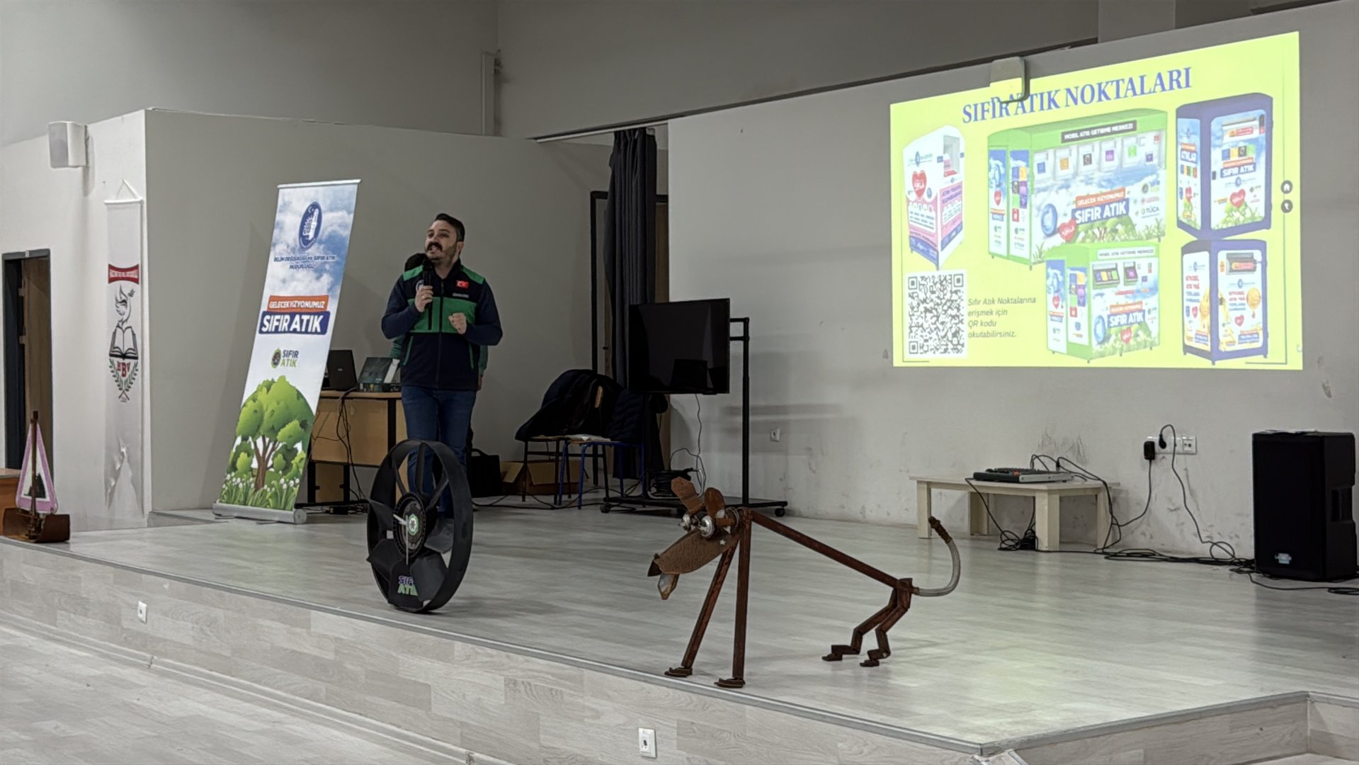 Seminerin ilk bölümünde öğrencilere sıfır atığın önemi ve atıkların değerlendirilmesi konularında İklim Değişikliği ve Sıfır Atık Müdürlüğü Çevre Mühendisi Oğuzhan Çavdar tarafından sunum yapıldı. Okul konferans salonunda VR gözlük ile İklim Değişikliği ve Sıfır Atık Simülasyonu Oyunu oynatılarak uygulamalı eğitim verildi.