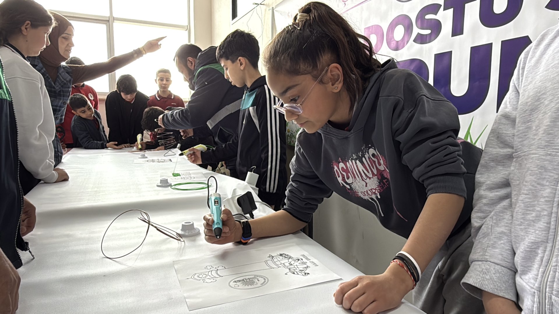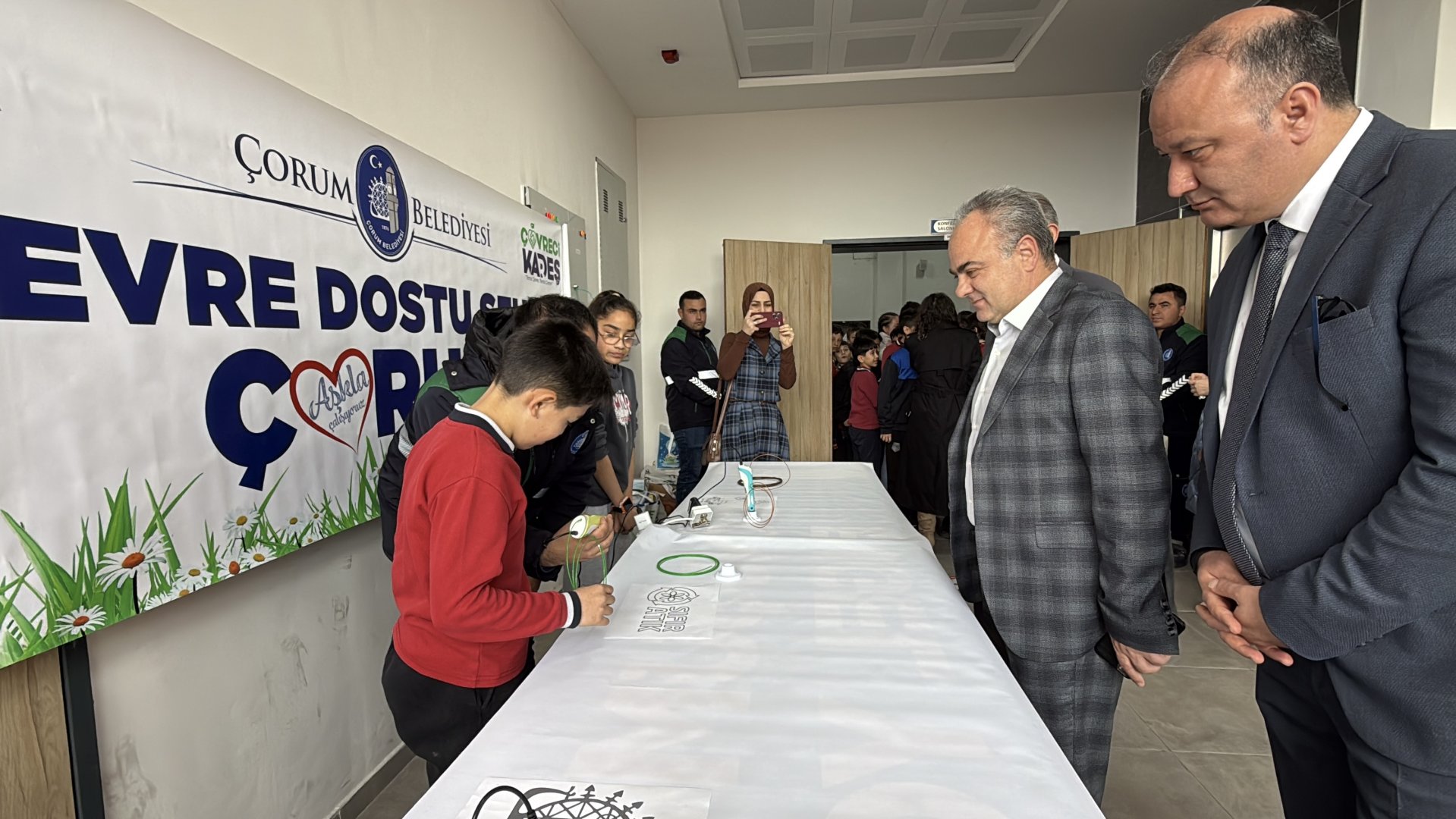 Öğrenciler, 3D kalem yazıcılarla atık plastiklerden üretilen filamentleri kullanarak kabartmalı ürünler yapma fırsatı bulurken, seminere katılan öğrencilere İklim Değişikliği ve Sıfır Atık Müdürlüğü tarafından çeşitli hediyeler verildi.