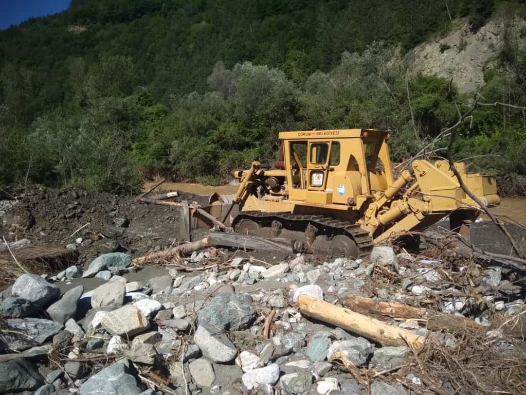 Çorum Belediyesi’nin Kastamonu’ya destek amacıyla gönderdiği vidanjör su tahliye işlemleri yapıyor, dozer heyelan sonucu kullanılamaz hale gelen içme suyu hattının yenilenme işinde çalışıyor. Greyder, Pınarbaşı ilçesinde heyelan sonucu kapanan yolları temizleyerek ilçe ile Kastamonu arası karayolu bağlantısını tekrardan kullanıma açıyor.
