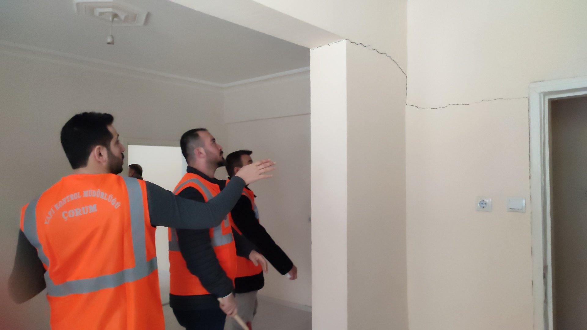 Çorum Belediyesi Yapı Kontrol Müdürlüğü ekipleri, vatandaşlardan gelen şikâyet ve ihbarlar üzerine bir süredir binalarda denetimlerini sürdürüyor.  Türkiye’yi sarsan depremlerin ardından çok sayıda ihbar alan Çorum Belediyesi, tüm başvuruları kısa sürede değerlendiriyor.