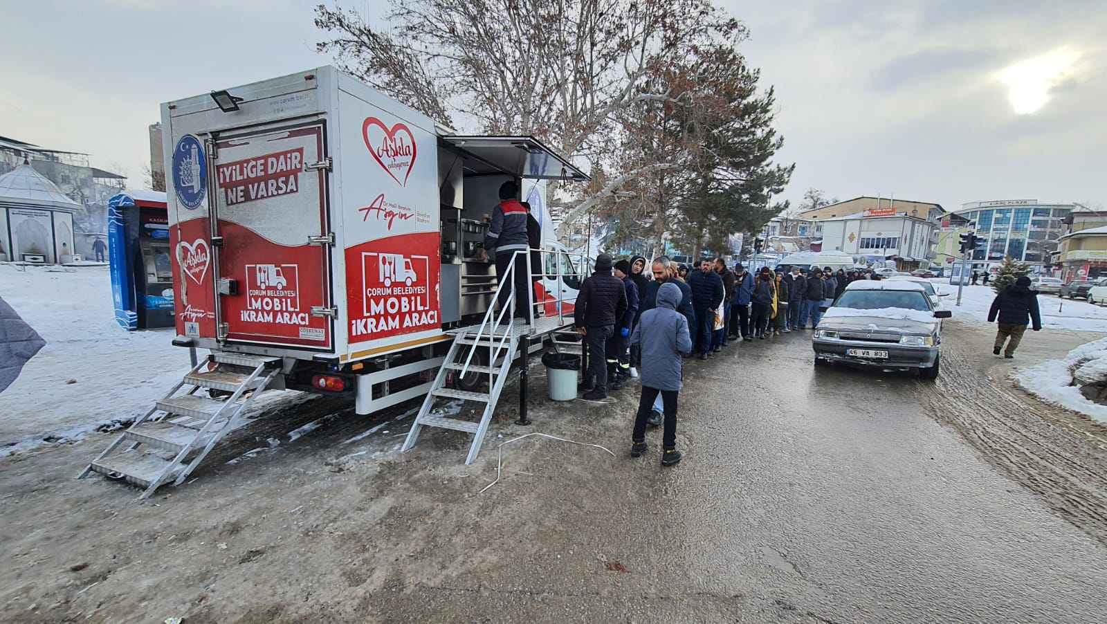 Çorum Belediyesi ekipleri, sıcak yemek ikramıyla da zor günlerinden depremzede vatandaşlarımızın yanında olmaya devam ediyor. Çorum Belediyesi mobil ikram aracıyla, Afşin bölgesinde vatandaşlara sıcak çorba, ekmek ve çay ikramı yapılıyor. Ayrıca halk ekmek fabrikası depremzedeler için ekmek üretimi yapıyor. Çorum Belediyesi, afet bölgesine Çorum’dan her gün 60 bin ekmek gönderecek.