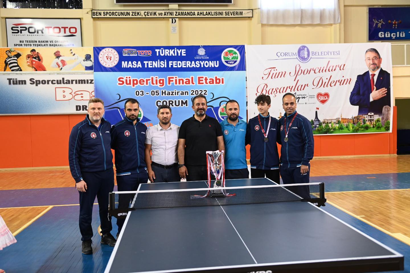 Masa Tenisi Süper Ligi Play-Off son etap maçları Çorum’da Süper lig temsilcimiz Belediyemiz Gençlikspor erkek takımı, Play-Off’ta üçüncü olarak Çorum’a ilk kupayı getirdi. Çorum Belediyespor’un raketleri, Avrupa kupalarında ülkemizi temsil etmeye hak kazandı.