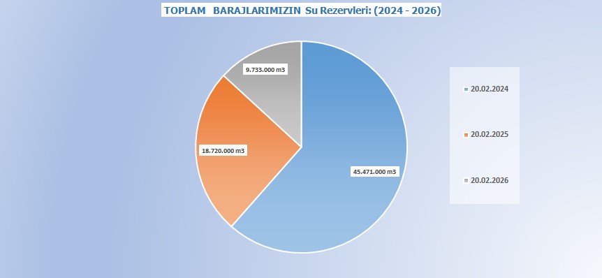 Toplam rezerv verilerine göre, dört barajın kullanılabilir su miktarı Şubat 2024’te 45 milyon 471 bin m³ seviyesindeyken, Şubat 2025’te 18 milyon 720 bin m³’e, Şubat 2026 itibarıyla ise 9 milyon 733 bin m³’e geriledi. Buna göre iki yıllık süreçte toplam rezervde yaklaşık yüzde 78,6 oranında azalma yaşandı.